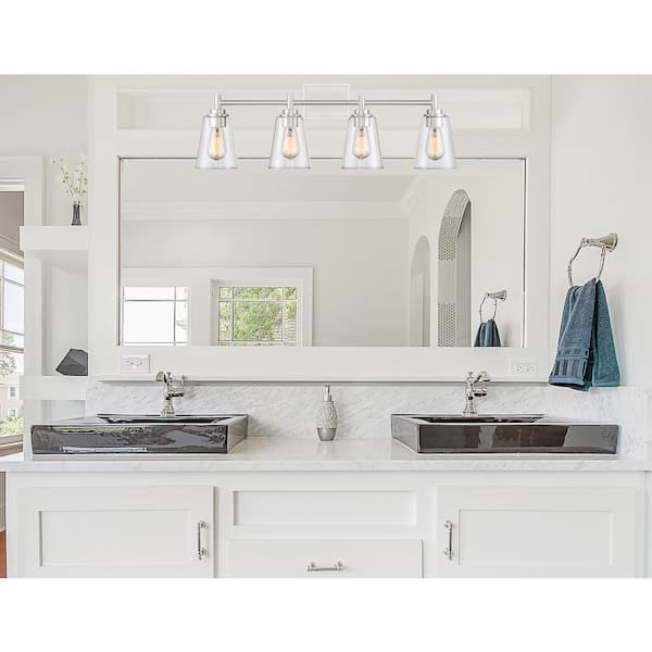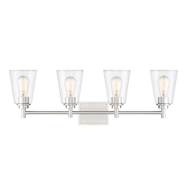 Westin 31 in. 4-Light Satin Platinum Industrial Vanity Light with Clear Glass Shades