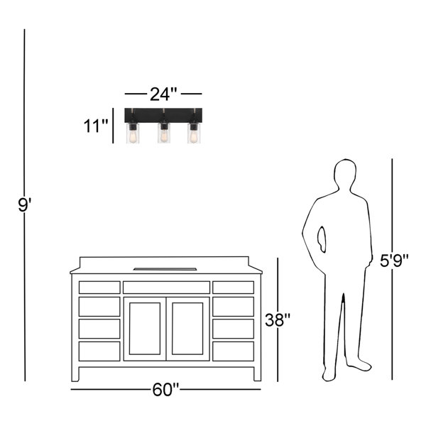 The light fixture measures 24 in. W x 11 in. H x 6.75 in. E