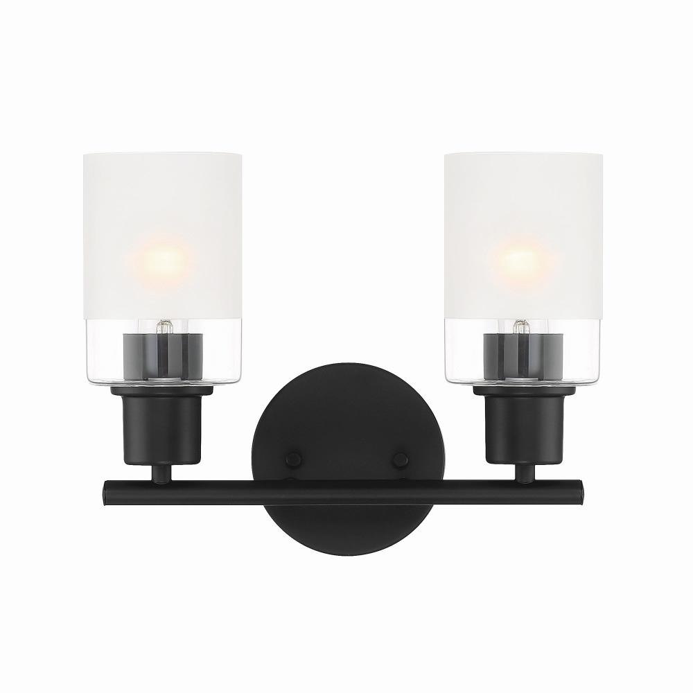 Simplicity, clean lines and the play on texture with the opaque and clear glass, is the focus of our Cedar Lane collection. A sleek metallic or a bold black finish will add a polished and modern aesthetic to your surroundings with enduring appeal.Brushed Nickel 2 Light Vanity with clear and etched glass is part of the Cedar Lane collectionRequires (2) medium based light bulbs - 60-Watts or less each (not included)Fixture dimension: 13-in W 10-in H 6-in D Damp location ratedUL listed, 1-year warrantyDimmable with a dimmer switchMounting hardware is included for an easy installation.