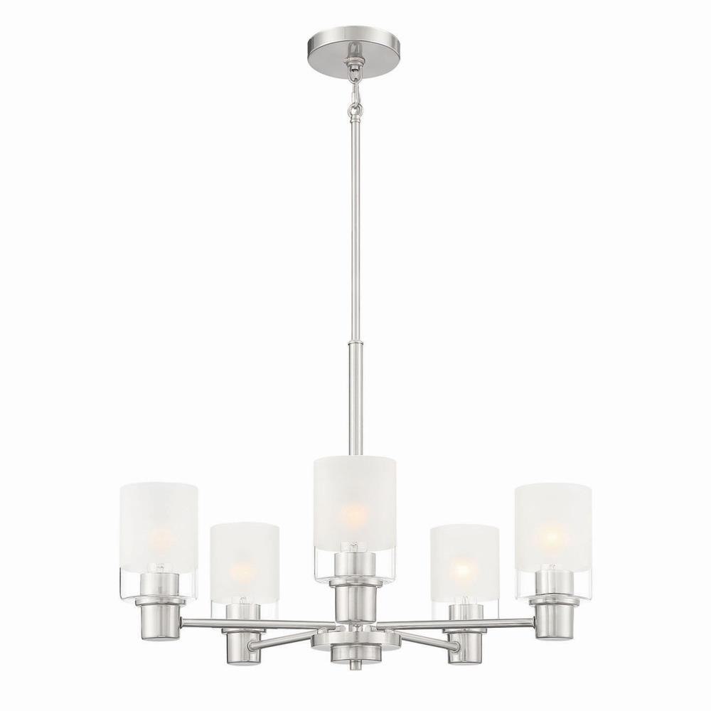 Brushed Nickel 5 Light Chandelier with clear and etched glass is part of the Cedar Lane collection