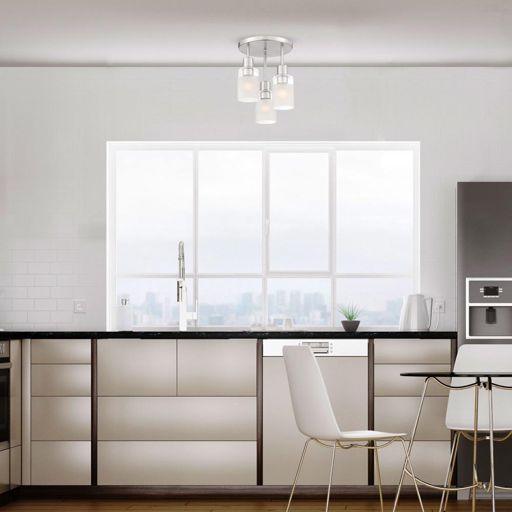 Simplicity, clean lines and the play on texture with the opaque and clear glass, is the focus of our Cedar Lane collection. A sleek metallic or a bold black finish will add a polished and modern aesthetic to your surroundings with enduring appeal.Brushed Nickel 3 Light Semi Flush with clear and etched glass is part of the Cedar Lane collectionRequires (3) medium based light bulbs - 60-Watts or less each (not included)Fixture dimension: 11-in W 13.75-in H Dry location ratedUL listed, 1-year warrantyDimmable with a dimmer switchMounting hardware is included for an easy installation.