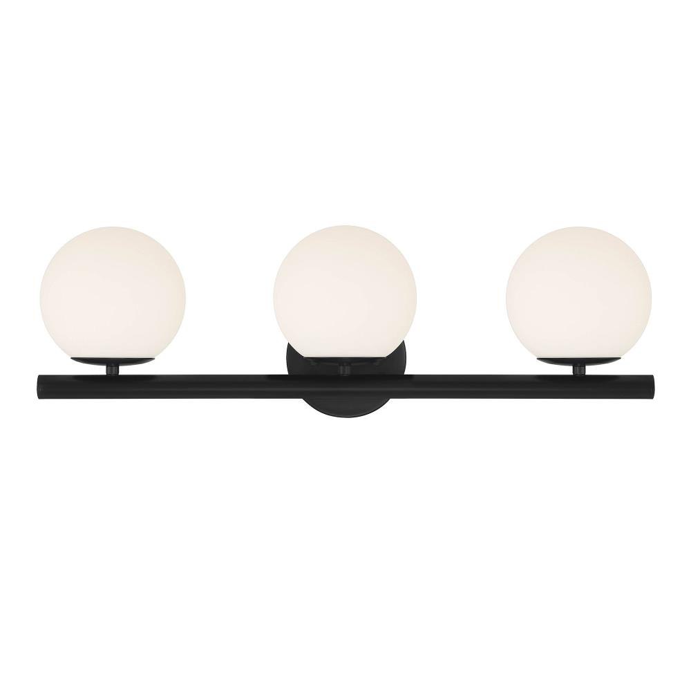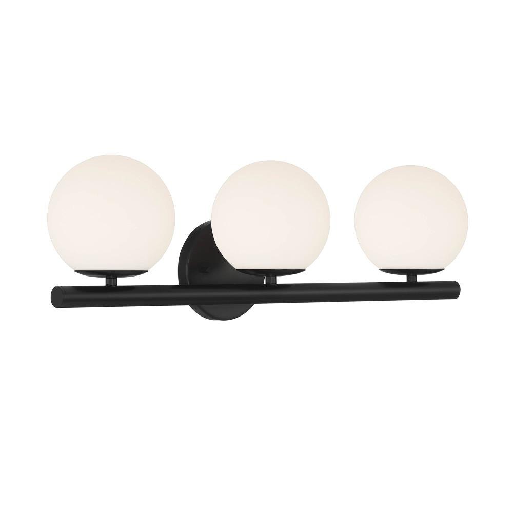 The globe-shaped shades and cylindrical arms of the Crown Heights collection provide a simple elegance and a modern touch to your home. The sleek matte black finish is flexible enough to work within any interior design. Made from durable steel for years of enjoyment and illumination.Sleek Matte Black finish goes well with nearly any decor Extends 7.25 inches from the wallCan be mounted with shades facing up or downUses 3 candelabra-base 60W max bulbs (not included)Etched opal glass shades for soft, diffuse lightRated for Dry or Damp indoor areasModern vanity is great for bathrooms, bedrooms, or other rooms where you need a extra light.