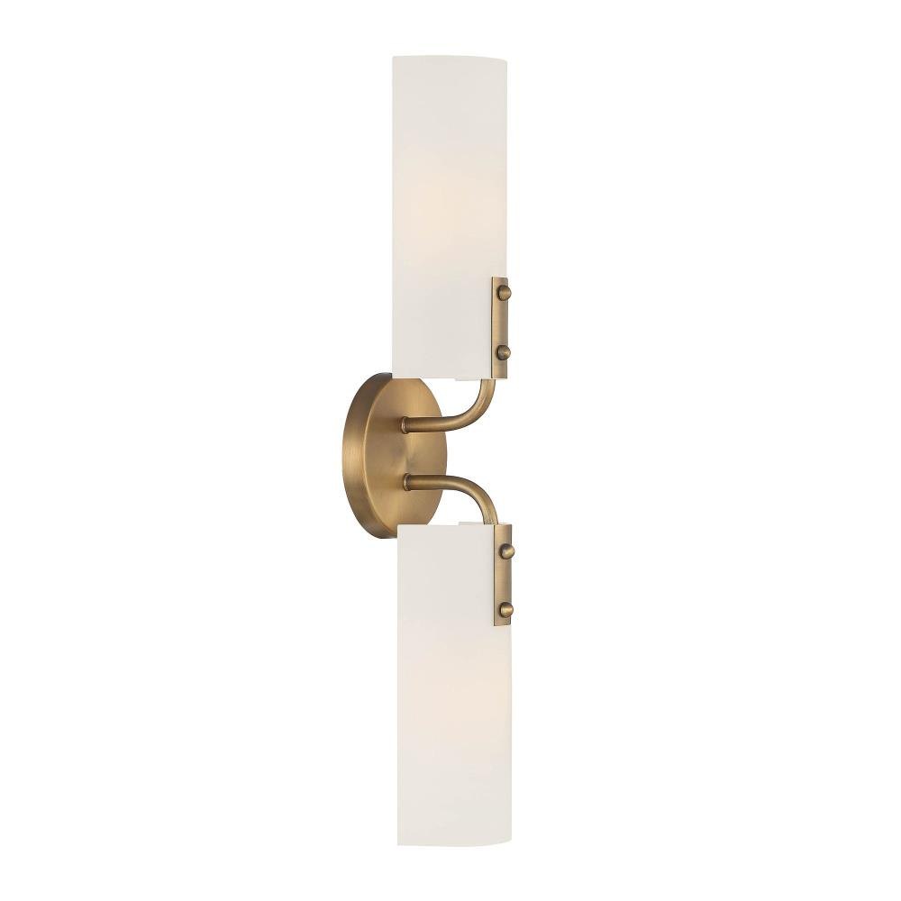 The Manhasset collection combines Traditional, Coastal, and Modern influences to create beautifully unique lighting fixtures for any room of the house. The warmth of the Old Satin Brass finish and Etched White Glass shades immediately add luxury to any room of your home. Made from durable steel for years of enjoyment and illumination.The Old Satin Brass finish adds a warm glow to any room it's inExtends 4.25 inches from the wallMount this fixture verticallyUses 2 medium-base 60W max bulbs (not included)Etched white glass shades for soft, diffuse lightRated for Dry or Damp indoor areasModern Coastal wall sconce is great for hallways, entryways, bathrooms, bedrooms, or any other rooms where you need a little extra light.