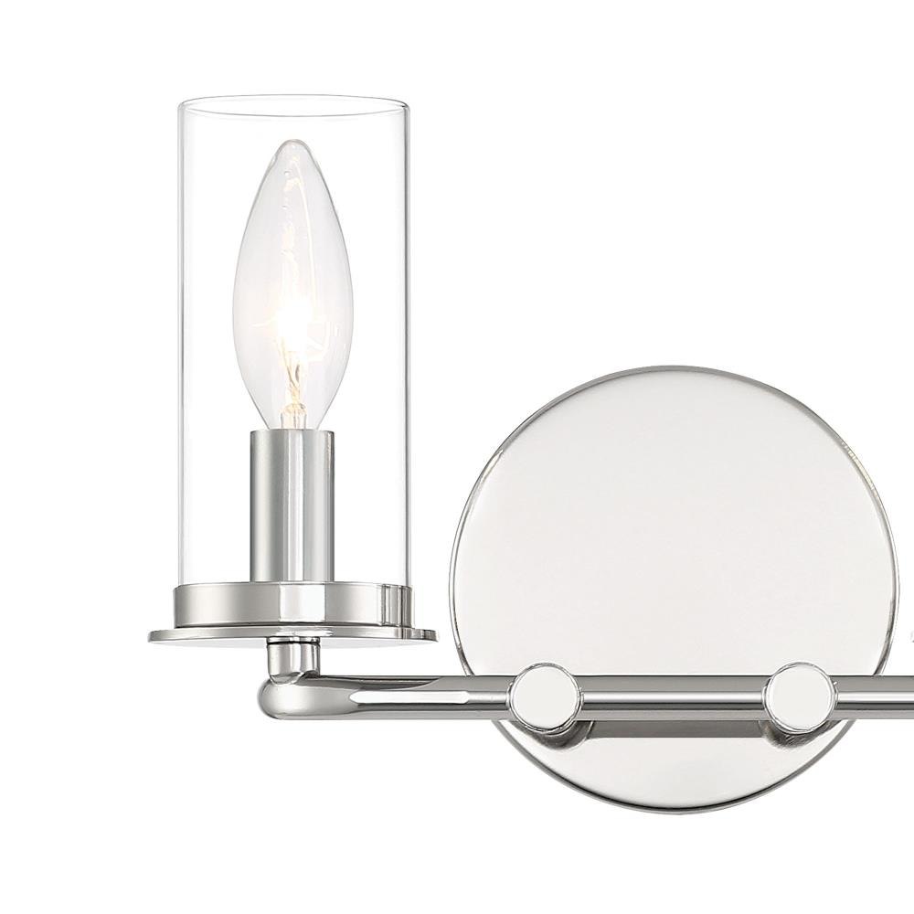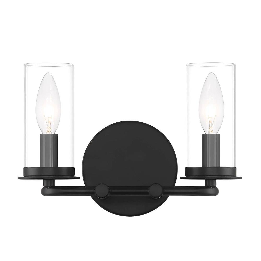 Combining Coastal, Modern, and Traditional design cues, the Hudson Heights collection will work well with furnishings of any style. The flexibility of this collection is further reinforced by the available Matte Black and Polished Nickel finishes. Made from durable steel for years of enjoyment and illumination.Sleek Matte Black finish goes well with nearly any decor Extends 4.75 inches from the wallMount with the shades facing upUses 2 candelabra-base 60W max bulbs (not included)Clear glass shades for bright, energizing lightRated for Dry or Damp indoor areasTraditional, yet Modern vanity is great for bathrooms, bedrooms, or other rooms where you need a extra light.