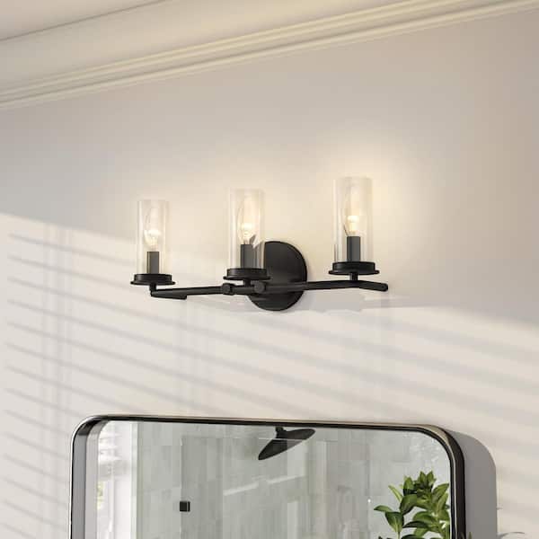 Hudson Heights 18 in. 3-Light Matte Black Transitional Vanity with Clear Glass Shades