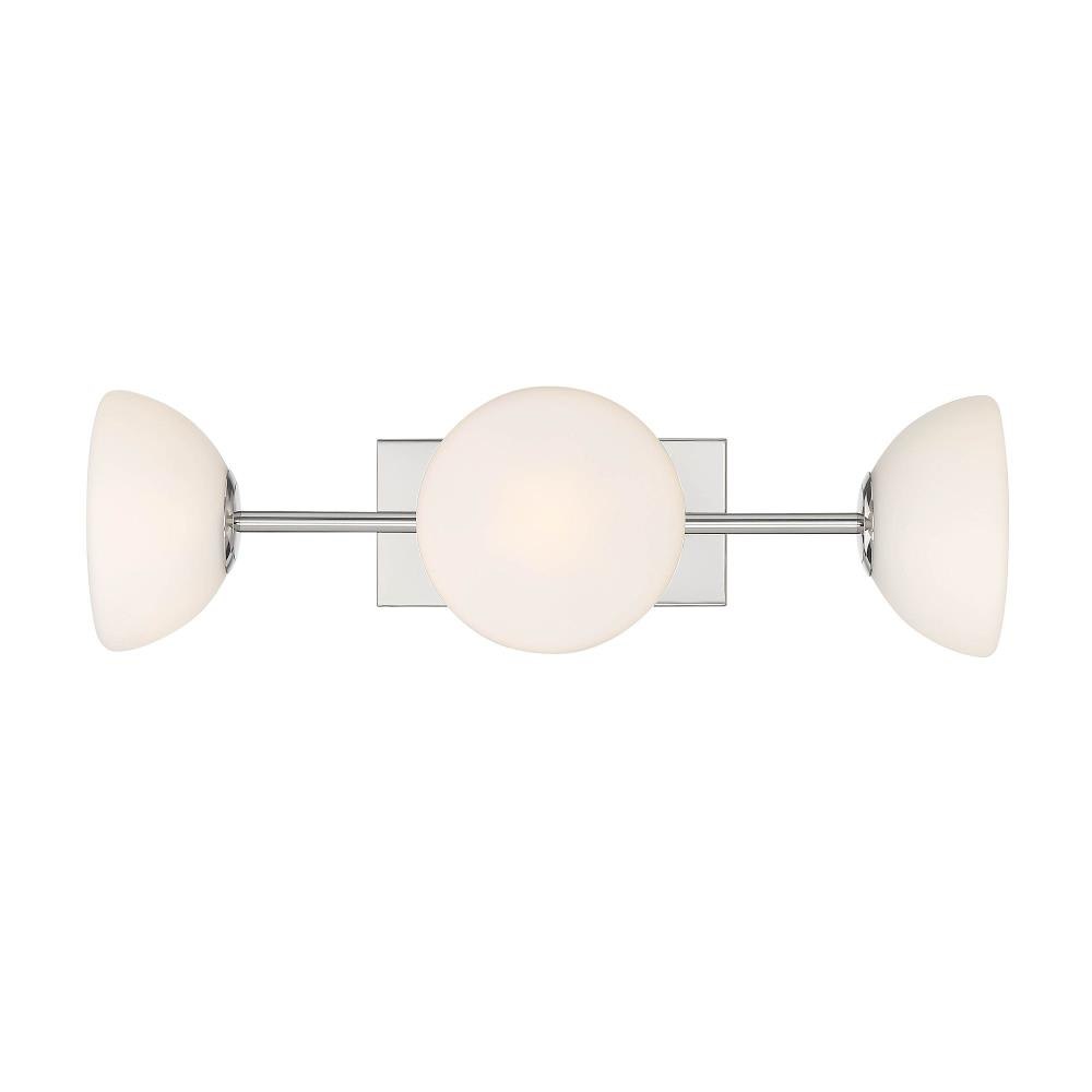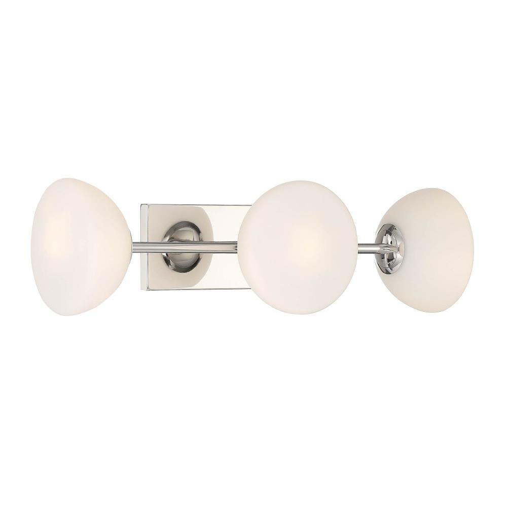 The Retro vibe of the Zio collection is reinforced by the puff-shaped Etched Opal Glass shades and the luxurious Polished Nickel finish. Combine these unique lighting pieces with Modern, Mid-Century Modern, or Glam interior designs for a great conversation piece. Made from durable steel for years of enjoyment and illumination.Shimmering Polished Nickel finish adds a bit of glam to your homeExtends 8.5 inches from the wallCan be mounted with shades facing up or downIncludes 3 G9 Xenon 60W max bulbsEtched opal glass shades for soft, diffuse lightRated for Dry or Damp indoor areasRetro Modern vanity is great for bathrooms, bedrooms, or other rooms where you need a extra light.