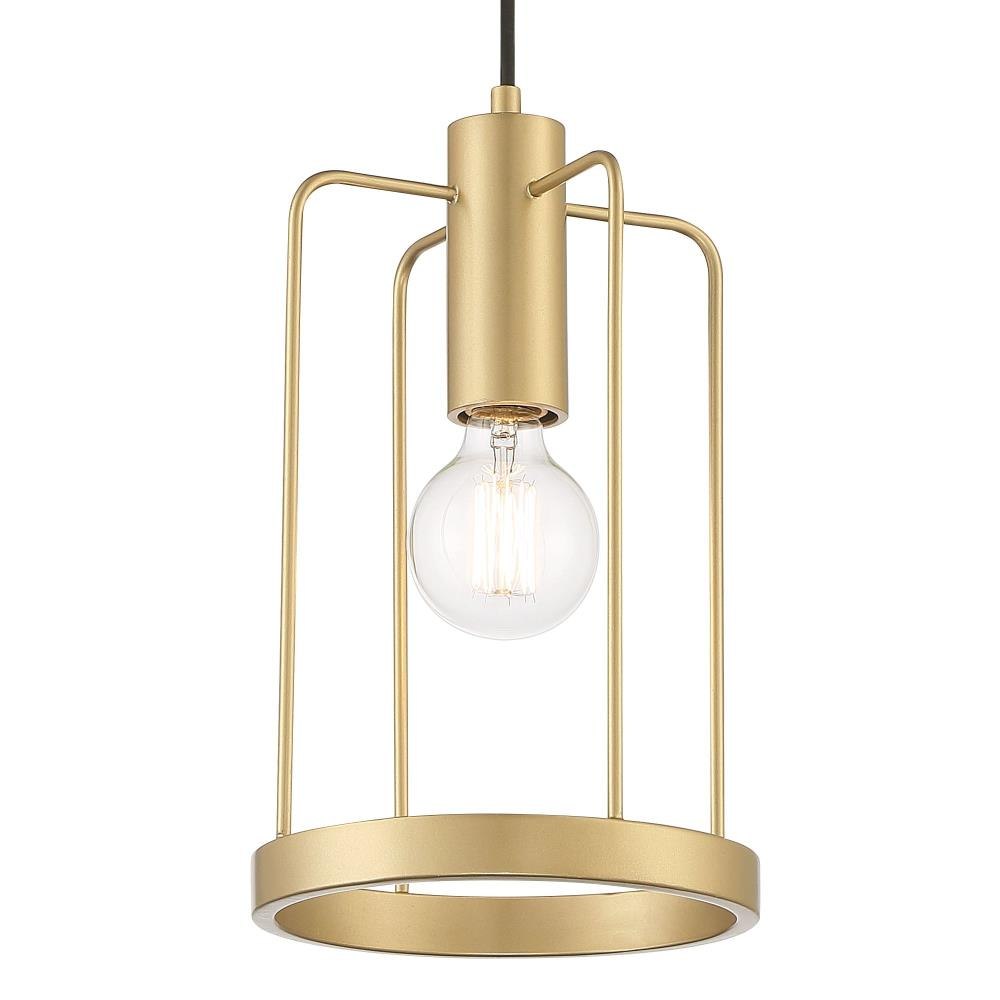 The Tafo collection is Modern Industrial design at its best, with its thin cage and streamlined shapes. Tafo fixtures are perfect for filament bulbs, and come in either Golden Mist or Matte Black finishes. Made from durable steel for years of enjoyment and illumination.Golden Mist finish adds sophistication and luxury to any roomMax hanging height of 50 inches with included cordPendant is adjustable for sloped ceilings - up to 45 degreesUses 1 medium-base 60W max bulb (not included)Bare bulb design eliminates the shade and maximuzies illuminationRated for Dry indoor areas onlyModern Industrial pendant is great for living rooms, foyers, dining areas, and small-to-medium-sized rooms.