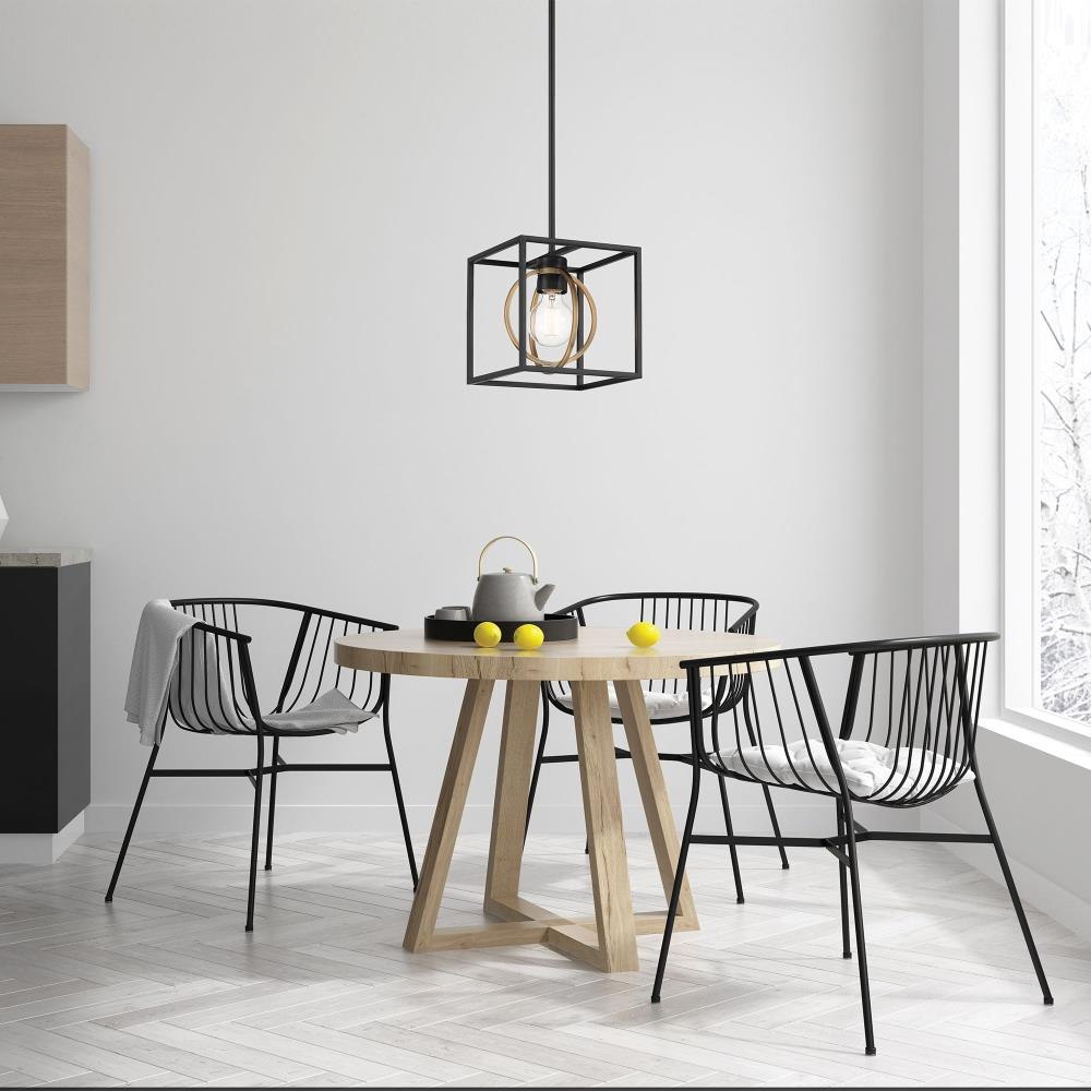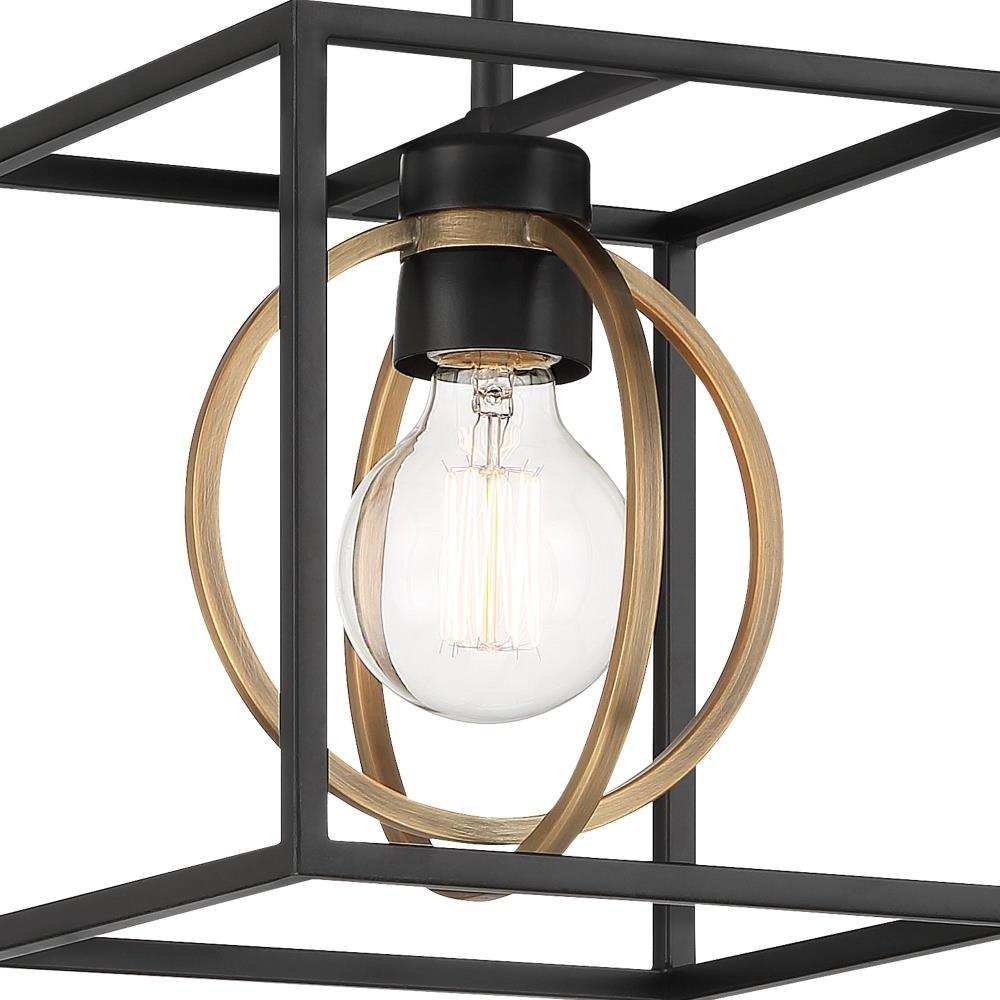 Nested geometric shapes and bold finish combinations are the hallmarks of the Modern Industrial style of Designers Fountain’s Kew Gardens collection. Bare bulbs shine the maximum amount of light on each slender edge and add a dramatic statement piece to any room in your home. Made from durable steel for years of enjoyment and illumination.Matte Black finish and Old Satin Brass accent add to modern decorMax hanging height of 44.5 inches with included rodsPendant converts to a Semi-Flush Mount for flexible placementUses 1 medium-base 60W max bulb (not included)Bare bulb design eliminates the shade and maximuzies illuminationRated for Dry indoor areas onlyModern pendant is great for living rooms, foyers, dining areas, and small-to-medium-sized rooms.