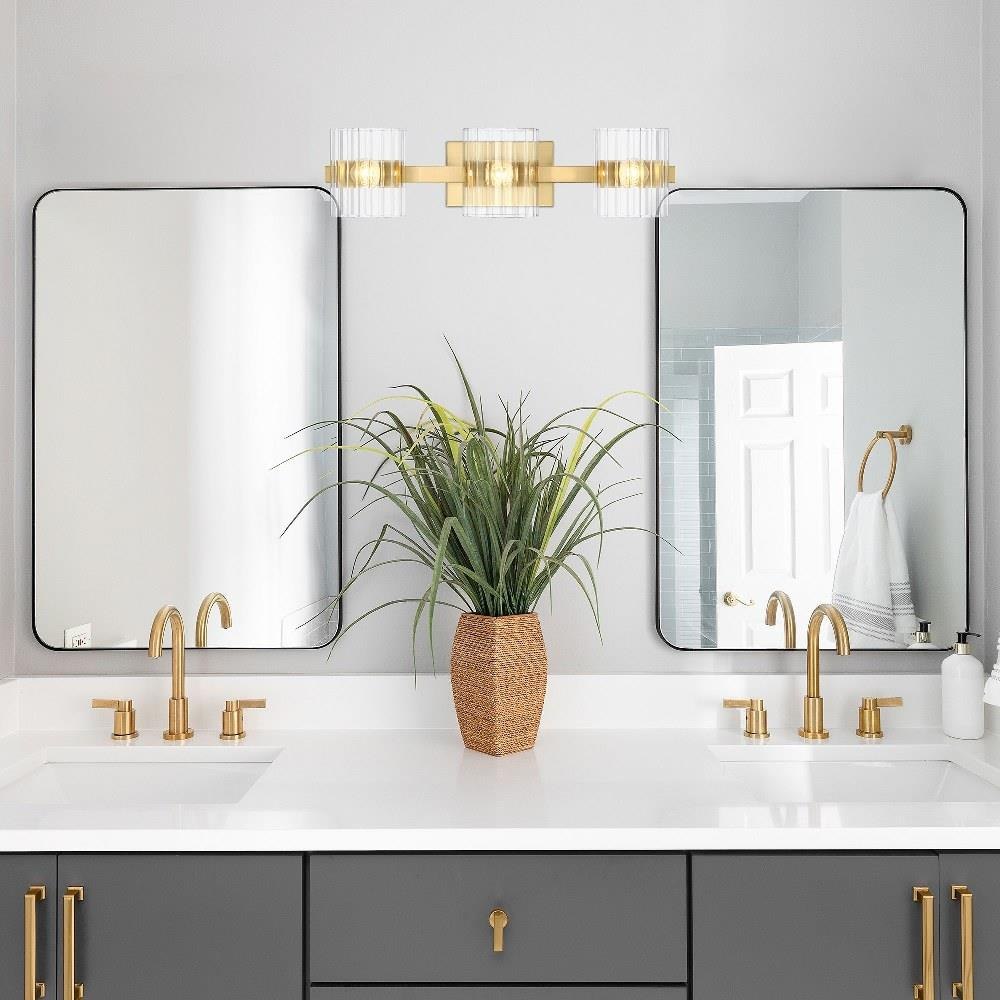 With a modern glam aesthetic, the Aries collection from Designers Fountain is a beautiful reminder of old Hollywood. The warm and luxurious brushed gold finish is accented by clear ribbed glass shades that create interesting lighting patterns. Aries features a wide variety of fixtures, so you'll be sure find that perfect solution for any room in your home.