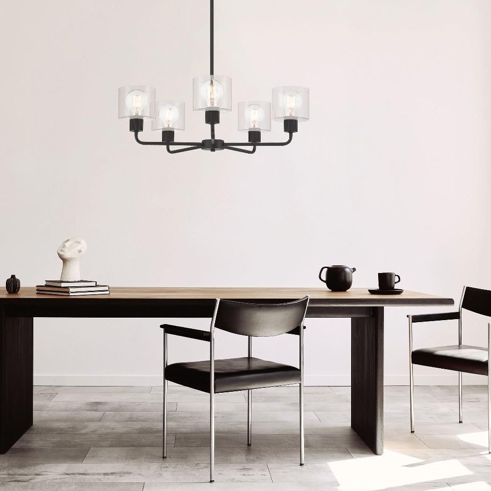 Sleek and minimalist, the modern Vibrato collection strikes a great balance between unassuming and visually interesting. The matte black finish is complemented by ribbed shade collars and simple geometric shapes. Vibrato from Designers Fountain is sure to be your new favorite light in the house.