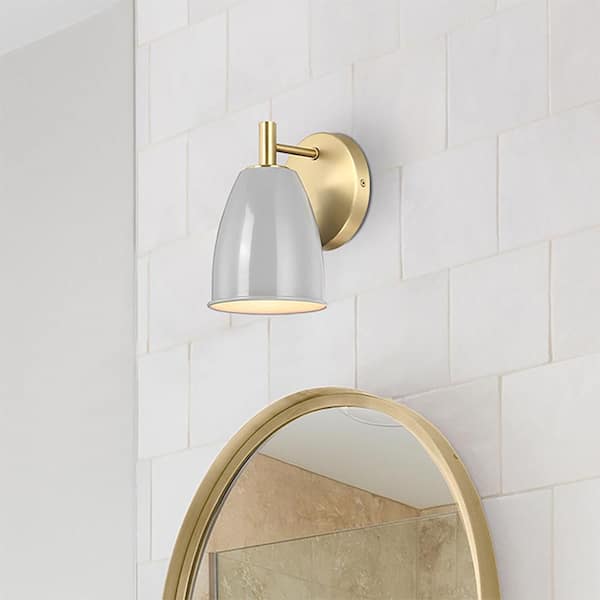 Biba 5.25 in. 1-Light Brushed Gold Modern Wall Sconce with Grey Sky Metal Shade