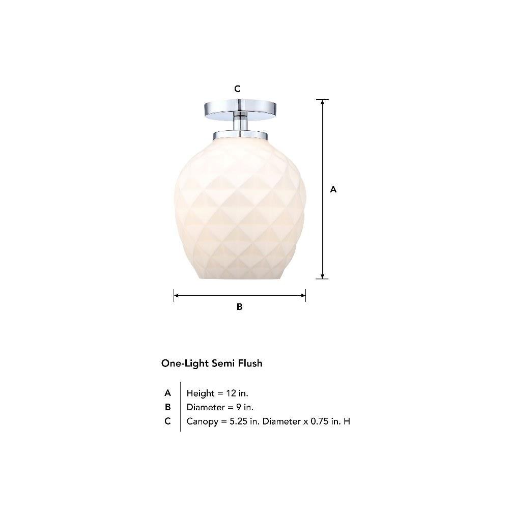 The geometric etched opal glass shades of the Dita semi-flush family evoke the visual of a sculpted pineapple. Whether brushed gold or polished nickel is your finish of choice, Dita is at home in bedrooms, hallways, and other small or medium-sized rooms. Though Dita is especially complimentary to coastal or tropical-themed decors, its flexible enough to work with just about any interior design theme.