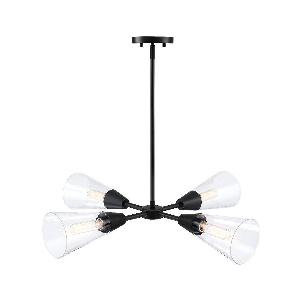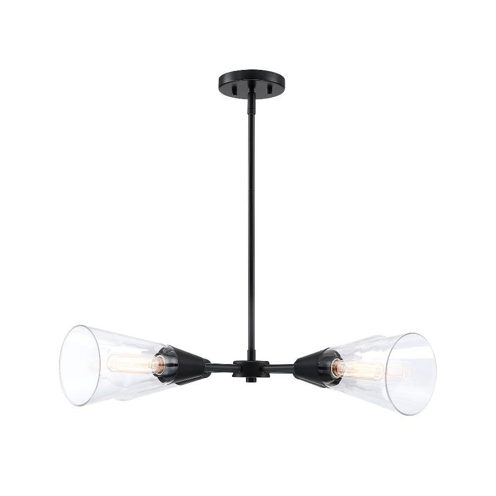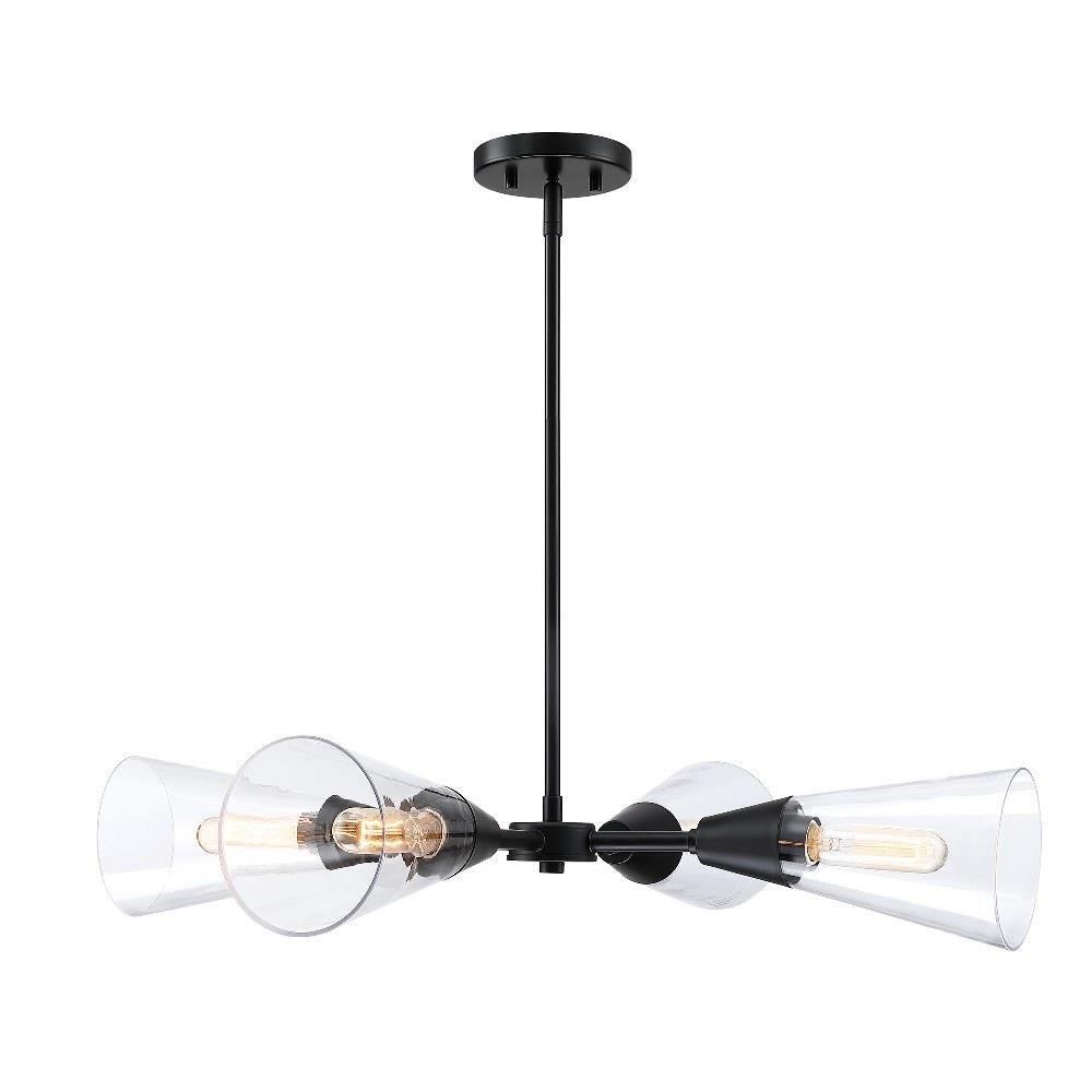 Designers Fountain's Norro family is modern geometric design at it best. Featuring conical clear glass shades and a sleek matte black finish, the minimalist look will be great many décors - especially mid-century modern homes or with retro-themed interior design. With a variety of configurations, you're sure to find the perfect piece to start conversations and make your visitors jealous.