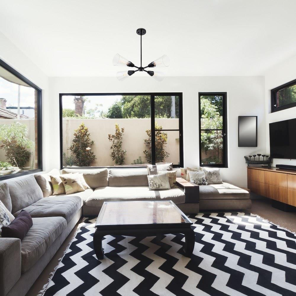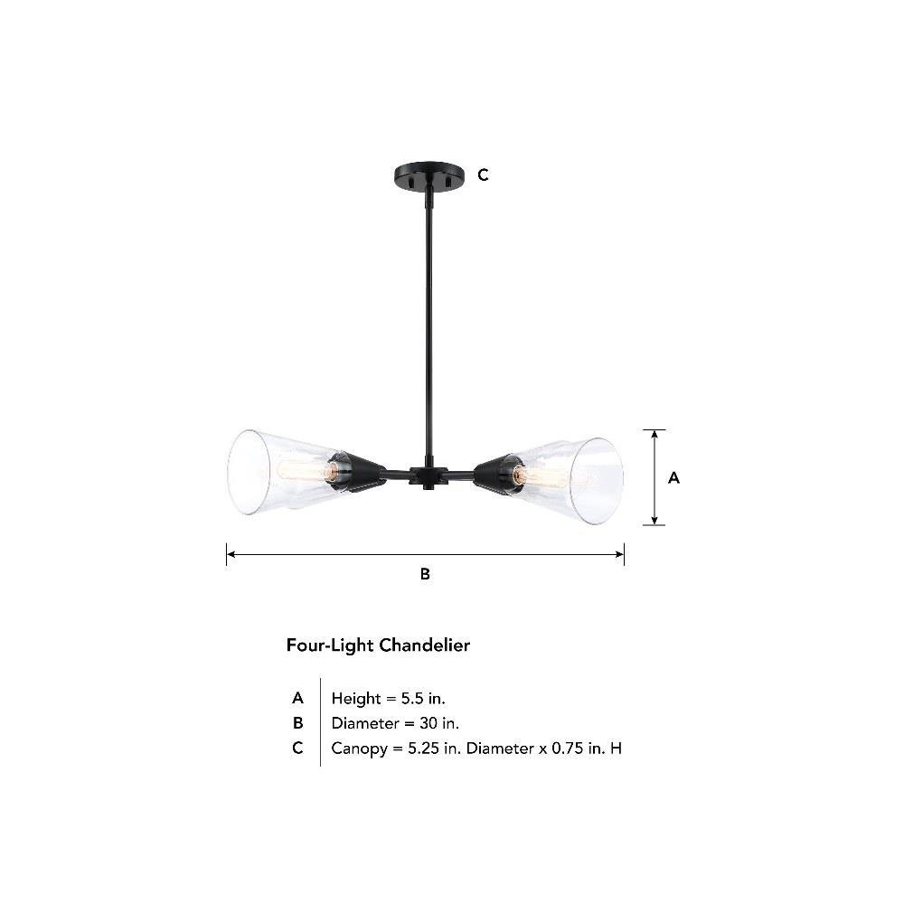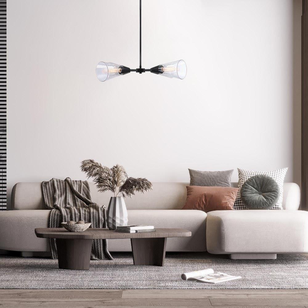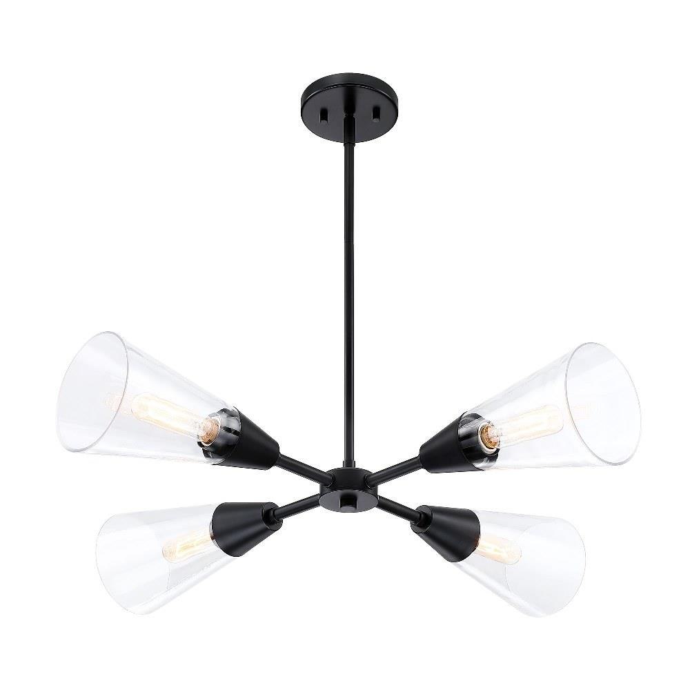 Designers Fountain's Norro family is modern geometric design at it best. Featuring conical clear glass shades and a sleek matte black finish, the minimalist look will be great many décors - especially mid-century modern homes or with retro-themed interior design. With a variety of configurations, you're sure to find the perfect piece to start conversations and make your visitors jealous.