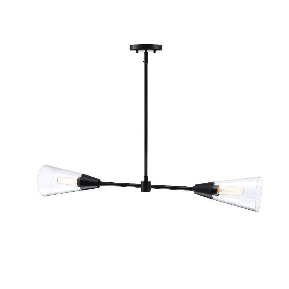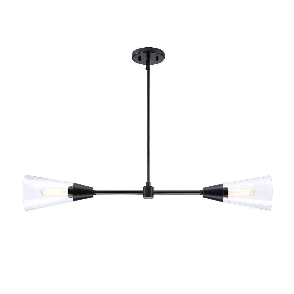 Designers Fountain's Norro family is modern geometric design at it best. Featuring conical clear glass shades and a sleek matte black finish, the minimalist look will be great many décors - especially mid-century modern homes or with retro-themed interior design. With a variety of configurations, you're sure to find the perfect piece to start conversations and make your visitors jealous.