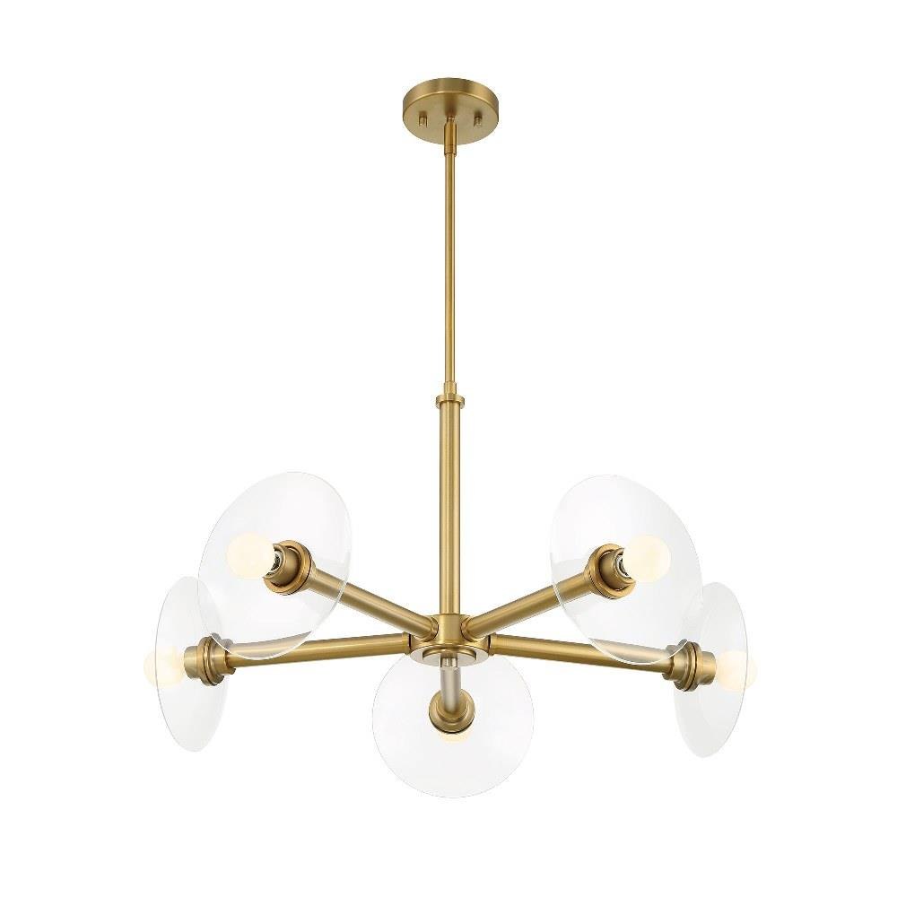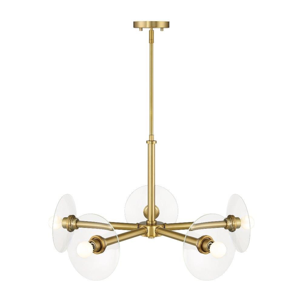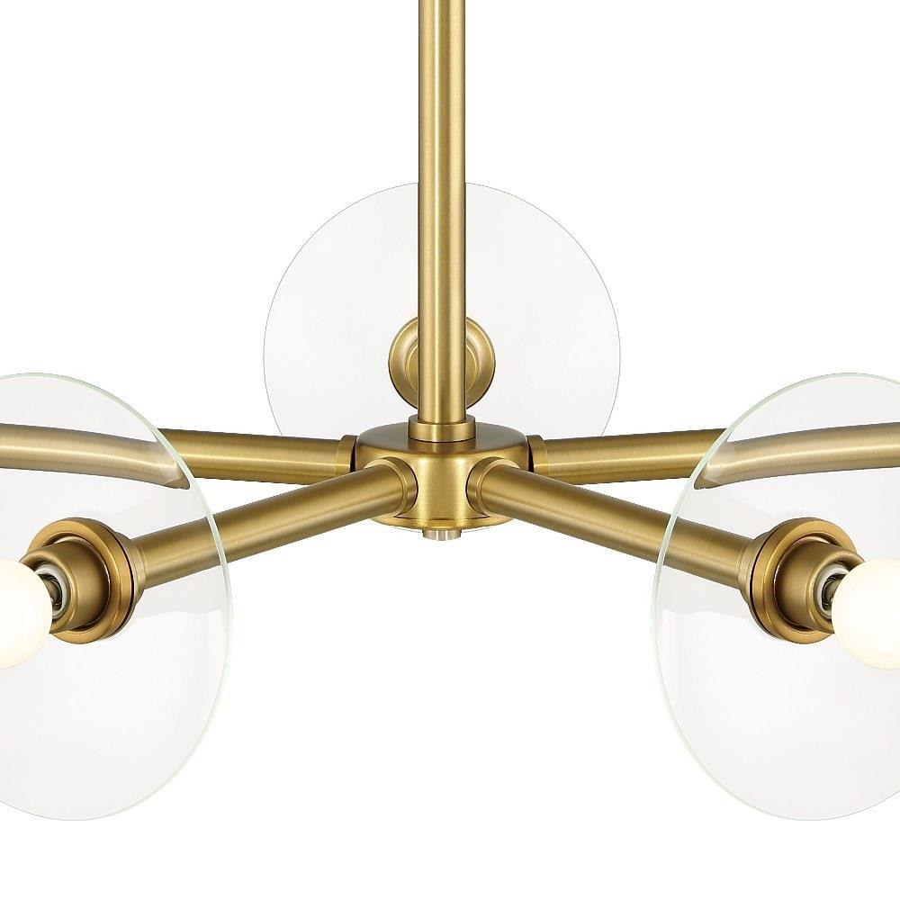 • Modern chandelier in Brushed Gold with Clear Glass shields