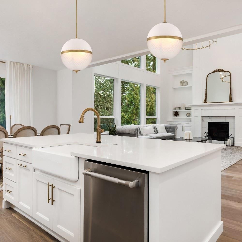 The Dia collection of pendant lights from Designers Fountain is a study in texture and elegance. Each shade is split between smooth etched opal glass and a textured, geometric treatment of the same glass. With a sleek matte black or warm old satin brass finish, Dia looks great in any interior decor.
