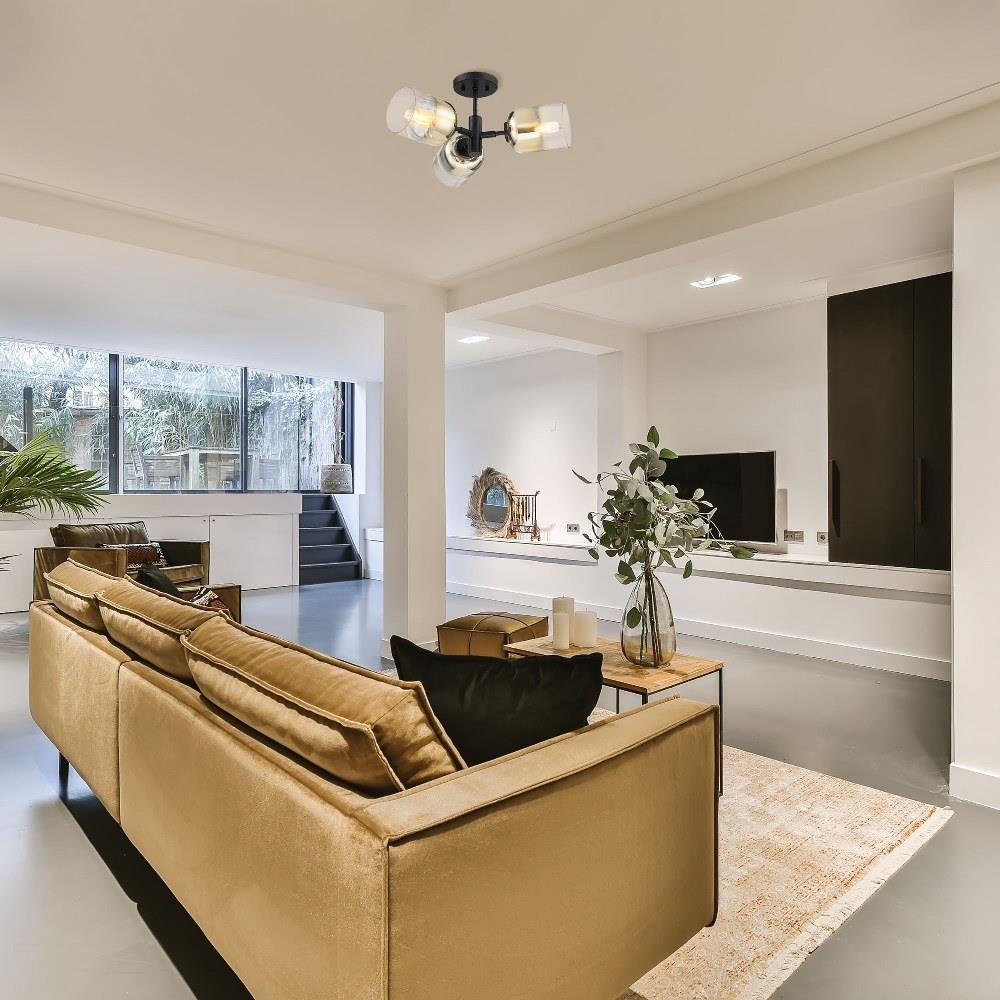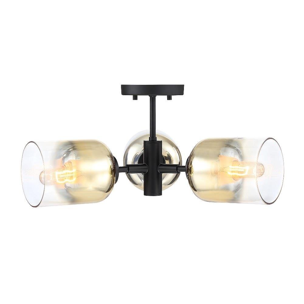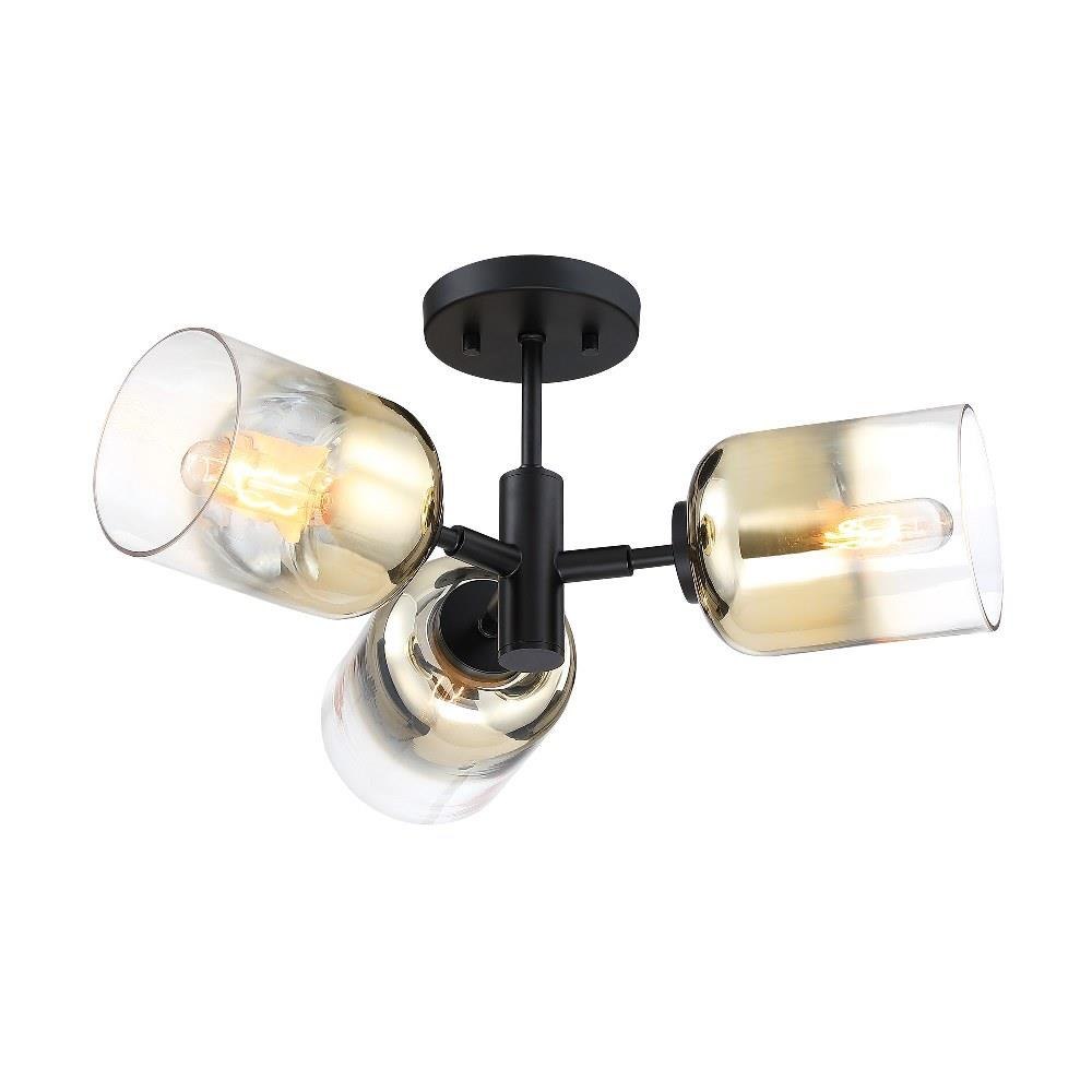 • Mid-century modern matte black ceiling-mount semi-flush light