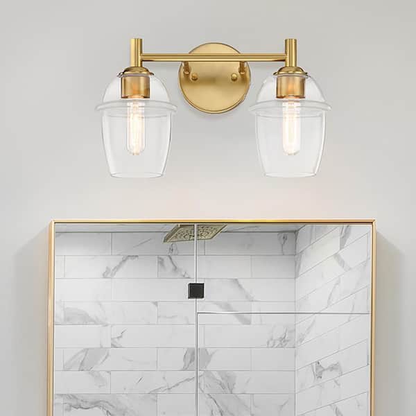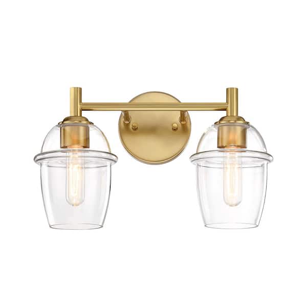 Summer Jazz 16 in. 2-Light Brushed Gold Classic Vanity Light with Clear Glass Shades