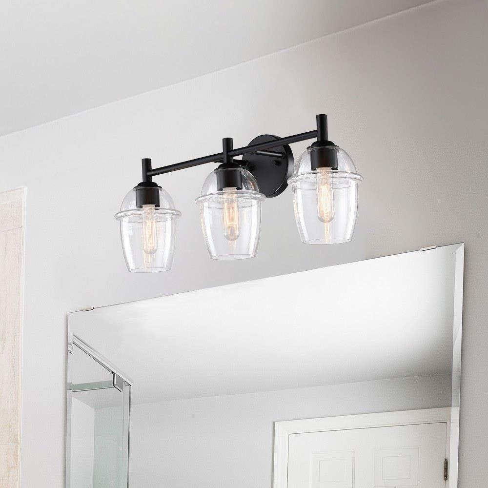 Designers Fountain's Summer Jazz collection clean modern lines with artisan craftsmanship. The unique design of the curved clear blown glass shades steals the show. Summer Jazz boasts multiple fixtures including sconces, vanities, pendants, chandeliers, and island lights, and is offered in warm brushed gold or sleek matte black. Use these pieces in bathrooms, bedrooms, hallways, over mirrors, or anywhere else you may need some accent lighting. Installation is a snap, with easy-to-follow instructions and all mounting and wiring hardware included.
