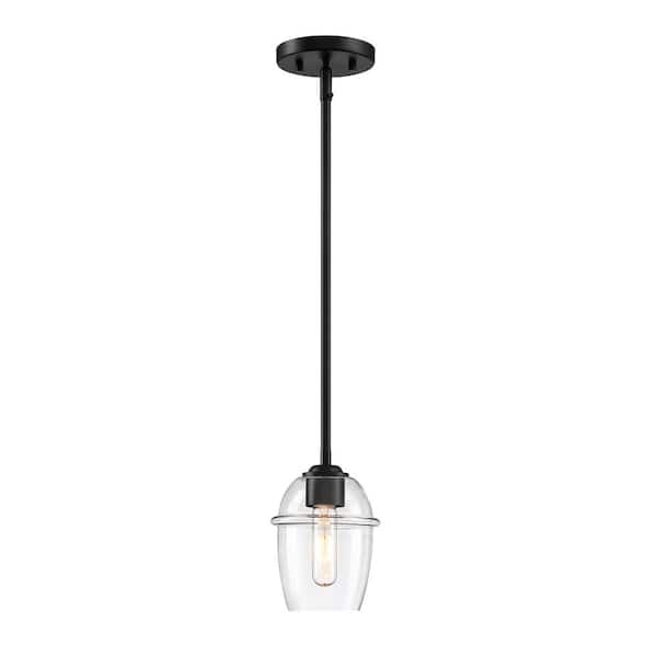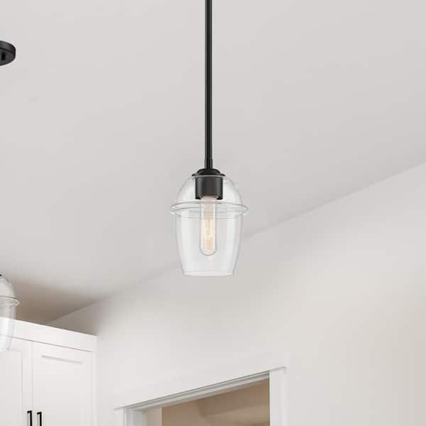 Summer Jazz 60-Watt 1-Light Matte Black Transitional Pendant Light with Clear Glass Shade and No Bulbs Included