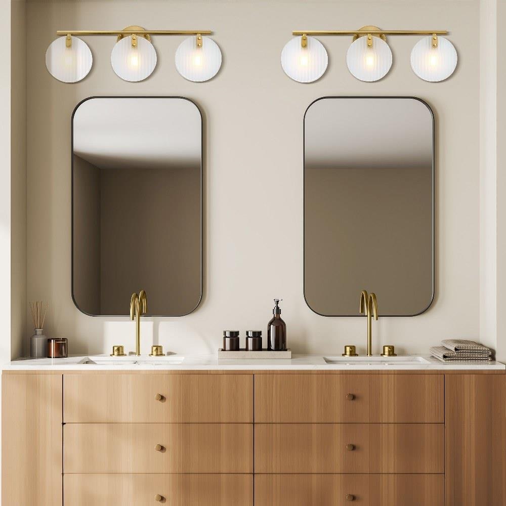 • Modern and contemporary brushed gold wall-mounted vanity light