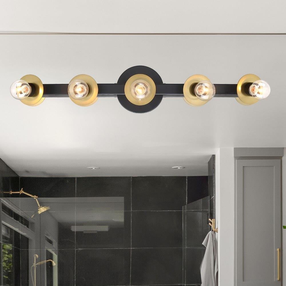 The Harmoni collection from Designers Fountain combines timeless form with modern details, resulting in true transitional design. Harmoni features a rich brushed gold disk detail contrasted against a sleek matte black finish. The Harmoni collection boasts multiple fixtures including wall, ceiling, and hanging pieces. Use Harmoni in bathrooms, bedrooms, hallways, over mirrors, or anywhere else you may need some accent lighting. Installation is a snap, with easy-to-follow instructions and all mounting and wiring hardware included.