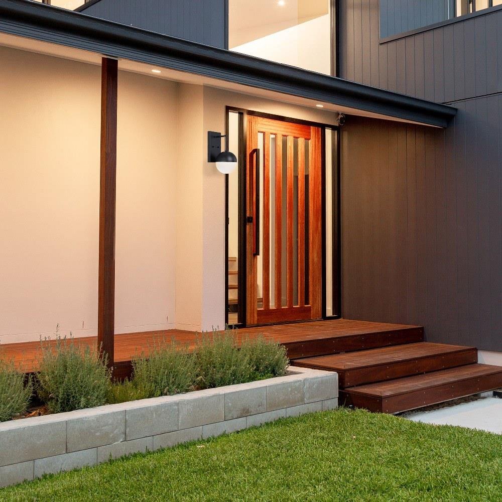 Pineview outdoor wall sconces from Designers Fountain offer a modern approach to a retro-inspired look. The collection features simple bold geometric forms, finished with an etched opal glass shade that glows warmly when lit. Offered in 2 sizes, both in a sleek black finish, Pineview works beautifully with modern, industrial, transitional and mid-century modern exteriors. Installation is a snap, with easy-to-follow instructions and all mounting and wiring hardware included.