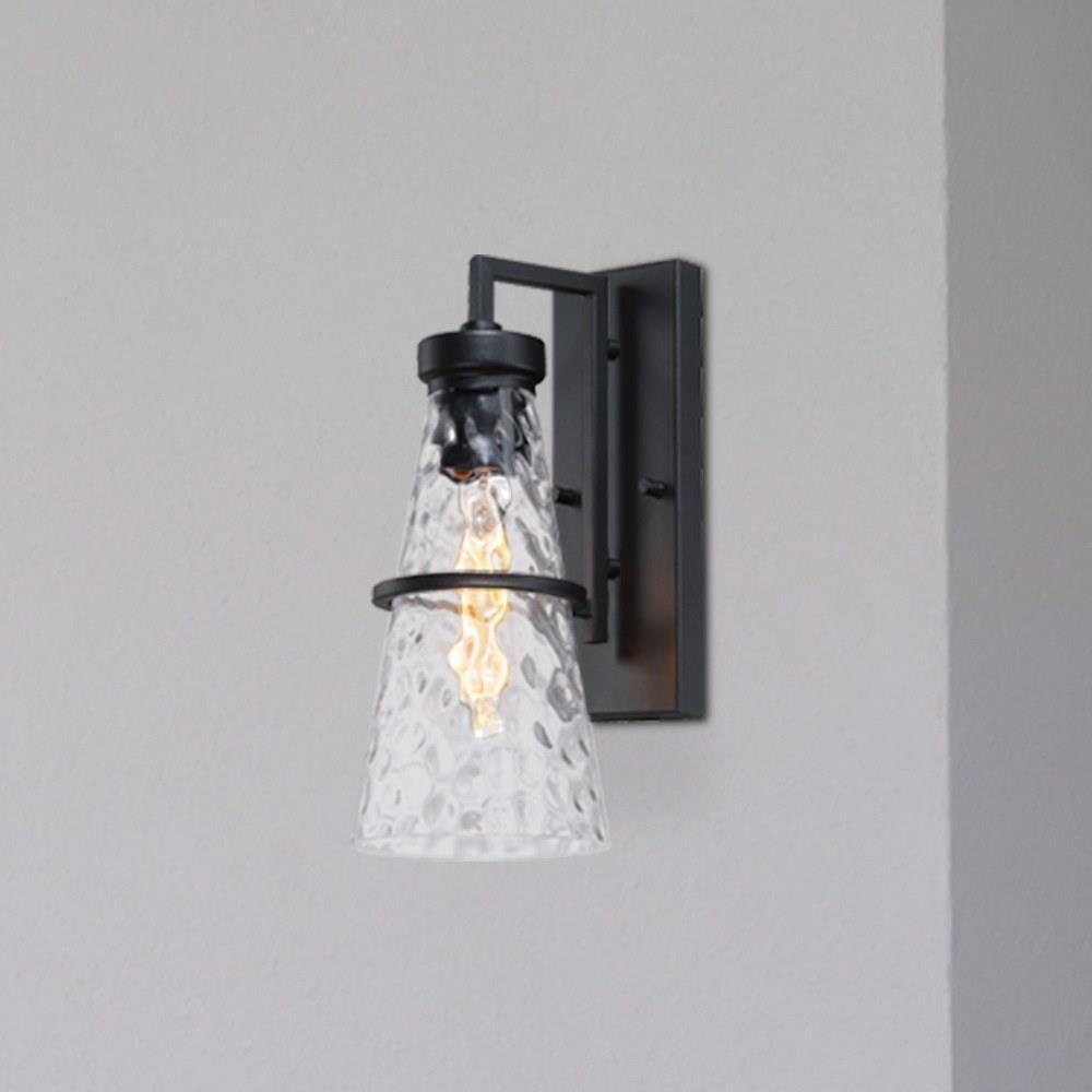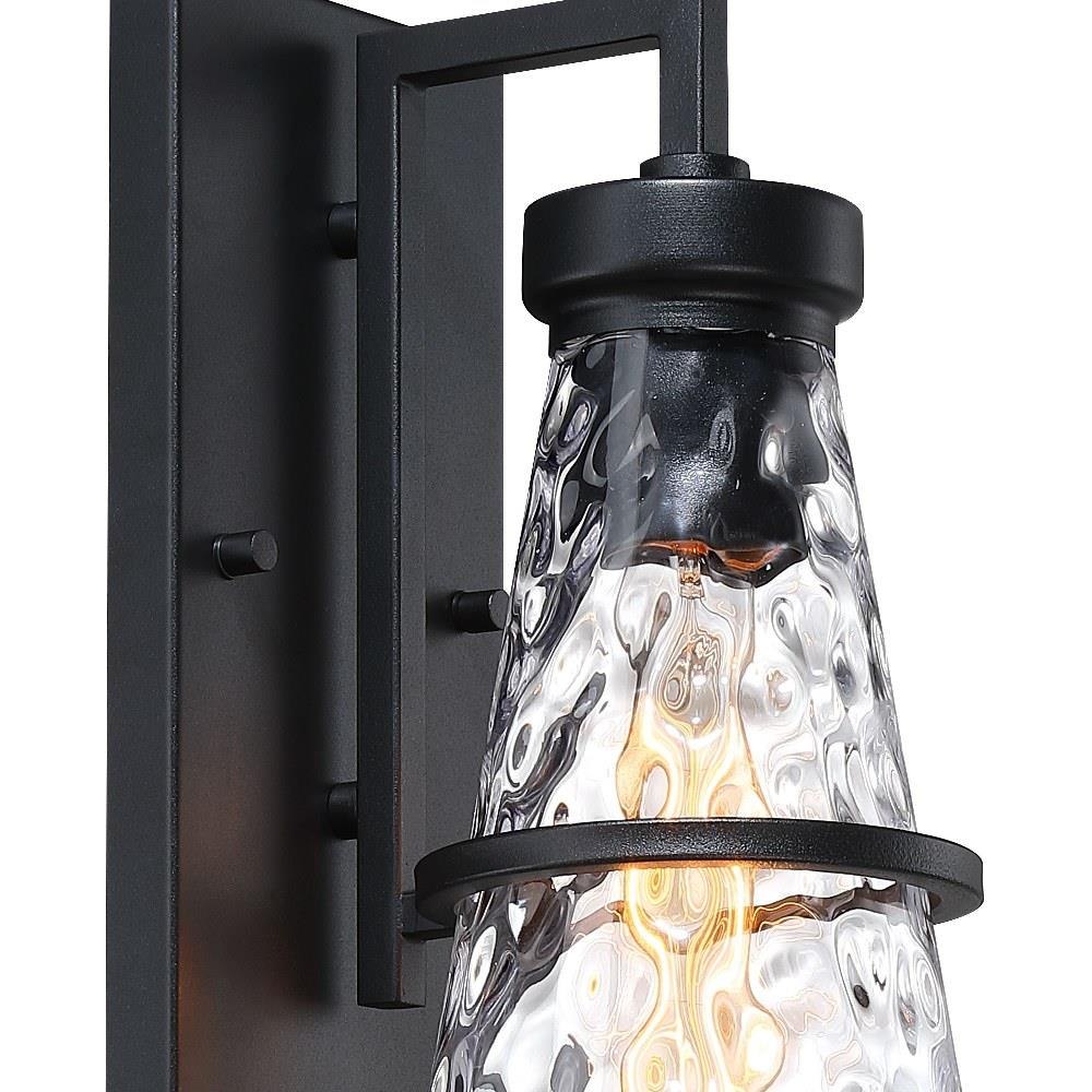 Field Daisy Lane outdoor wall sconces from Designers Fountain combine a clean modern aesthetic with welcome artisan touches. The collection features beautiful tapered clear hammered glass shades with a simple metal cage, and is available in a sleek black finish. Offered in 2 sizes, Field Daisy Lane works beautifully with modern, industrial, and transitional exteriors. Installation is a snap, with easy-to-follow instructions and all mounting and wiring hardware included.