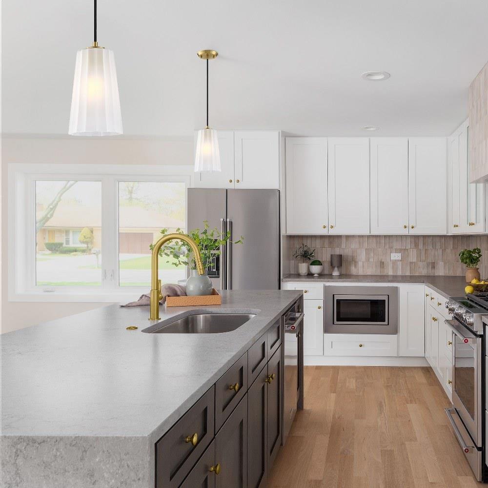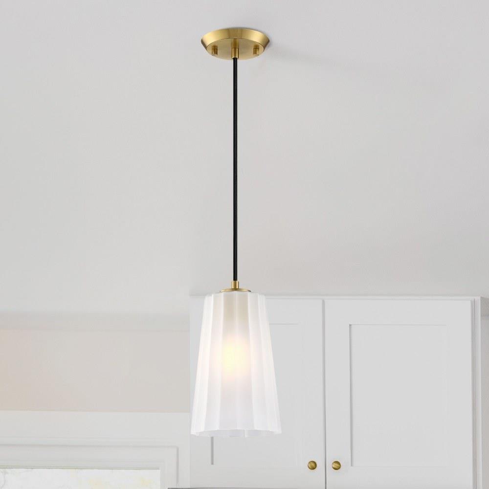 The elegant Liana collection from Designers Fountain features modern layered lighting and mixed materials that add texture and visual interest. A warm brushed gold finish is combined with a mix of etched glass and metal cage shades to provide a glamorous addition to any room. With several pieces in the collection, including wall and hanging solutions, place throughout your home for an added touch of sophistication. Installation is a snap, with easy-to-follow instructions and all mounting and wiring hardware included.