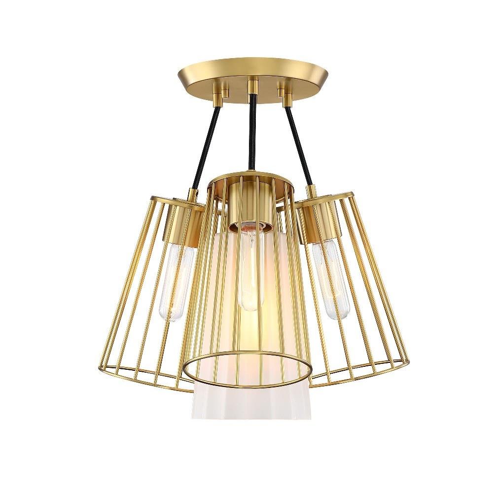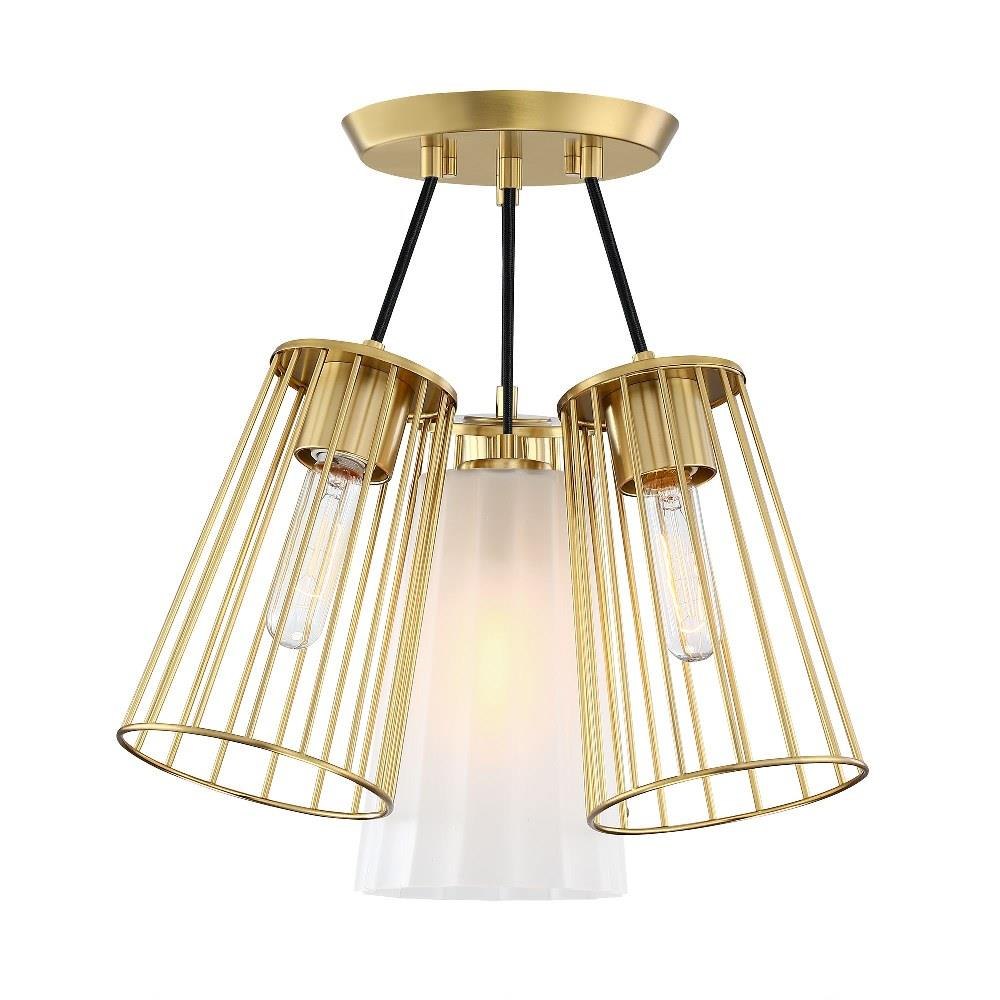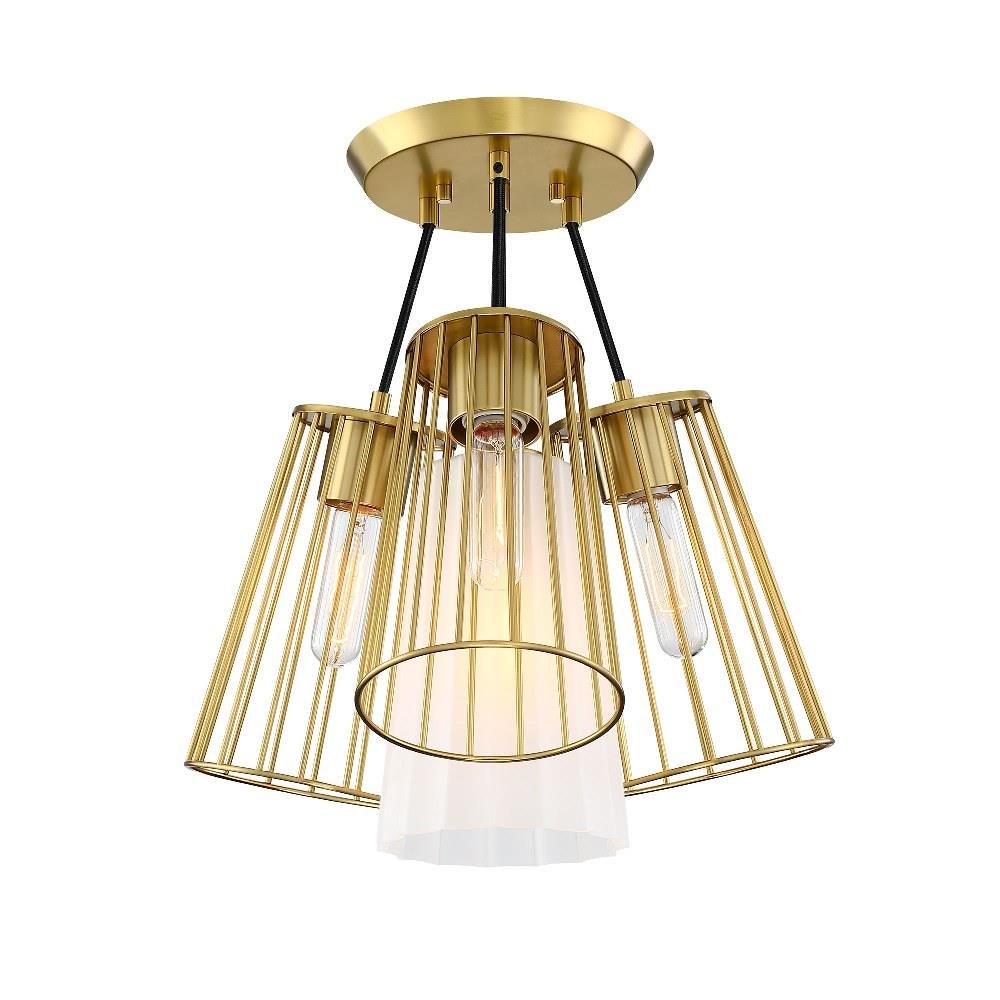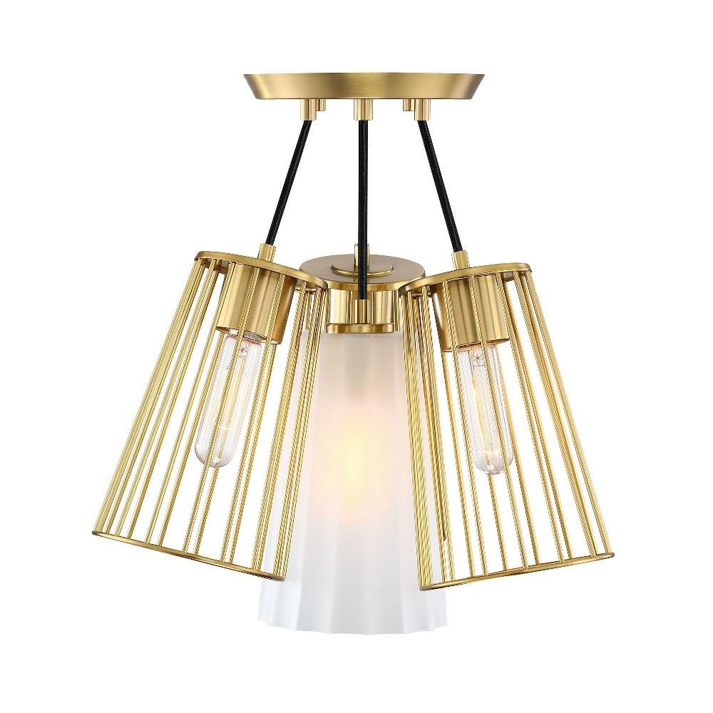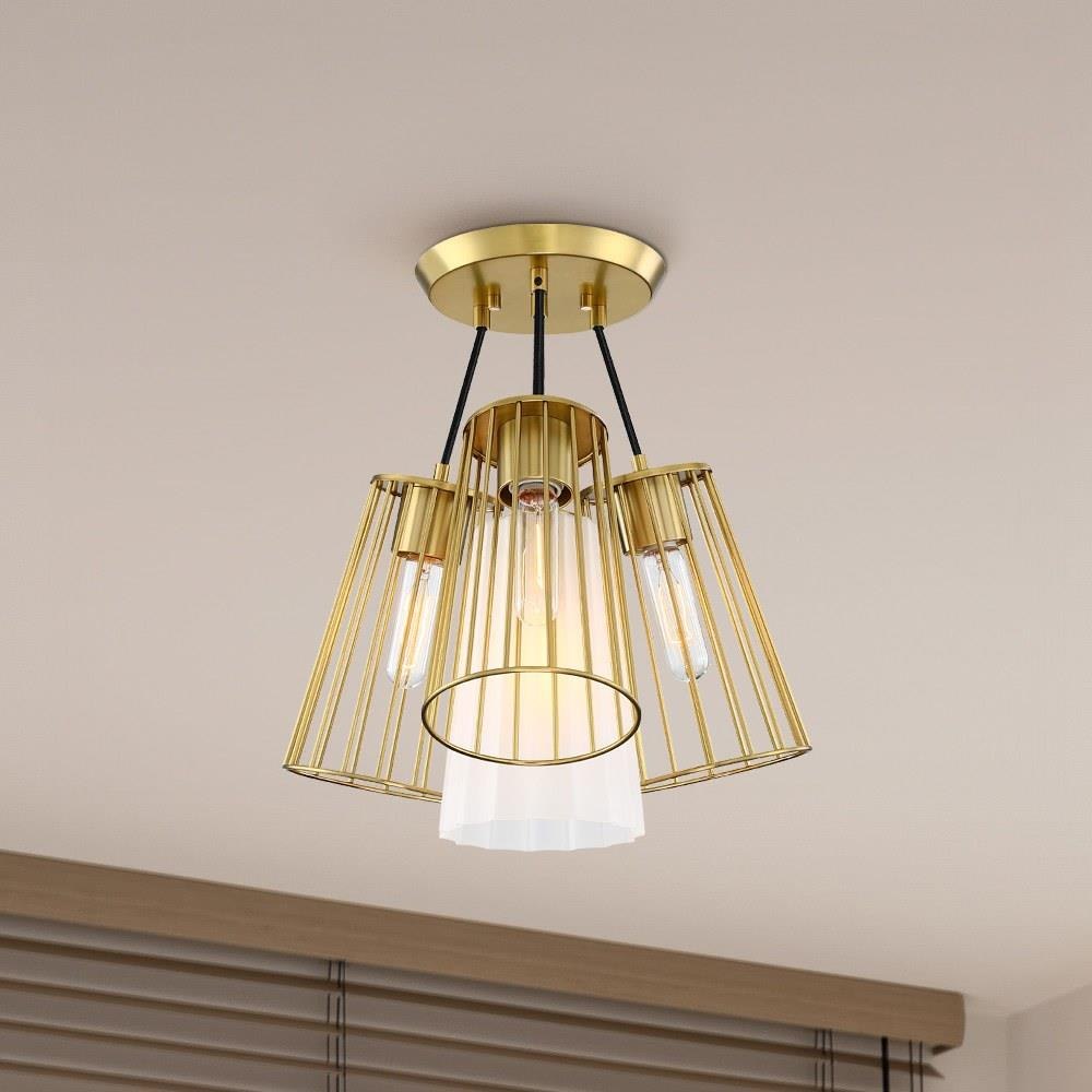 • Glam and retro-modern brushed gold ceiling-mount semi-flush light