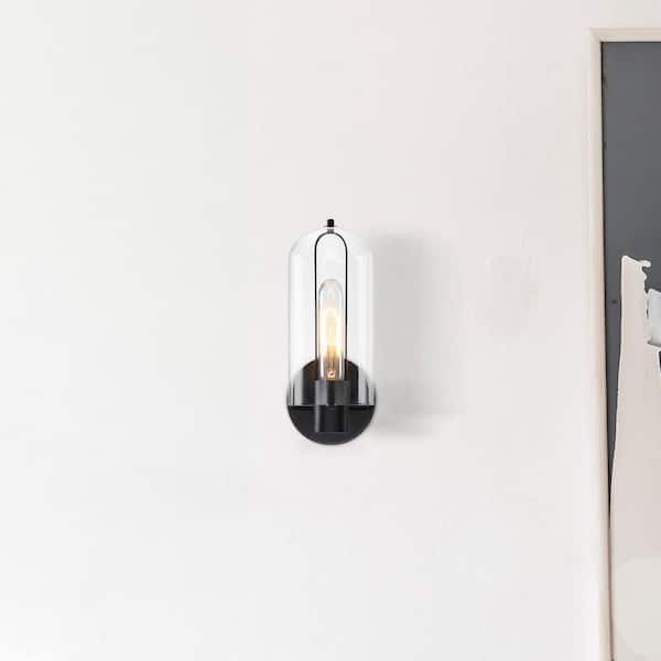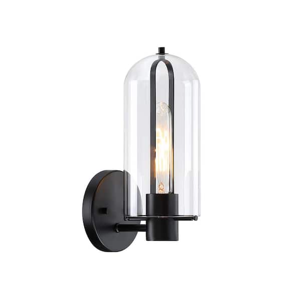 Skylar 5.25 in. 1-Light Matte Black Transitional Wall Sconce with Clear Glass Shade