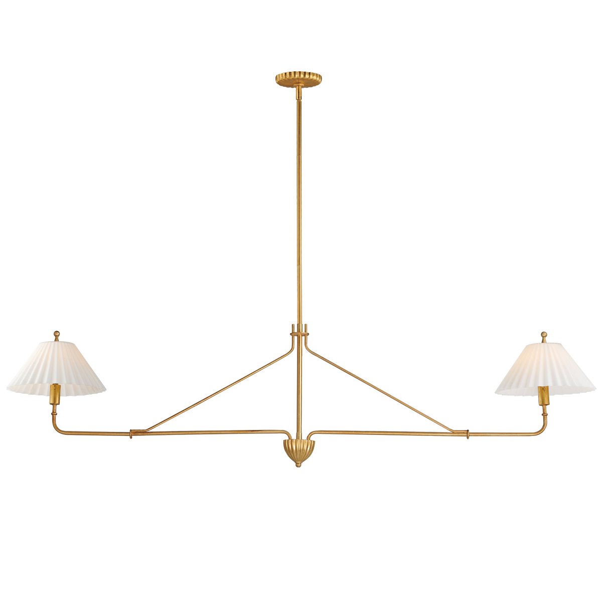 The Kismet Linear Suspension light fixture enhances any space with its elegant design and biophilic touches. Featuring charming Satin White glass shades inspired by pleated fabric, this chandelier combines modern aesthetics with nostalgic details, making it a standout piece in your home.