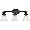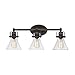 Seafarer Bathroom Vanity Light is a nautical inspired masterpiece. Features Clear Seedy glass cones, that offers abundant lighting, compliments the yoke frame finished in Polished Chrome or Oil Rubbed Bronze. Available in 2, 3, and 4 light options. Damp location rated. UL listed.