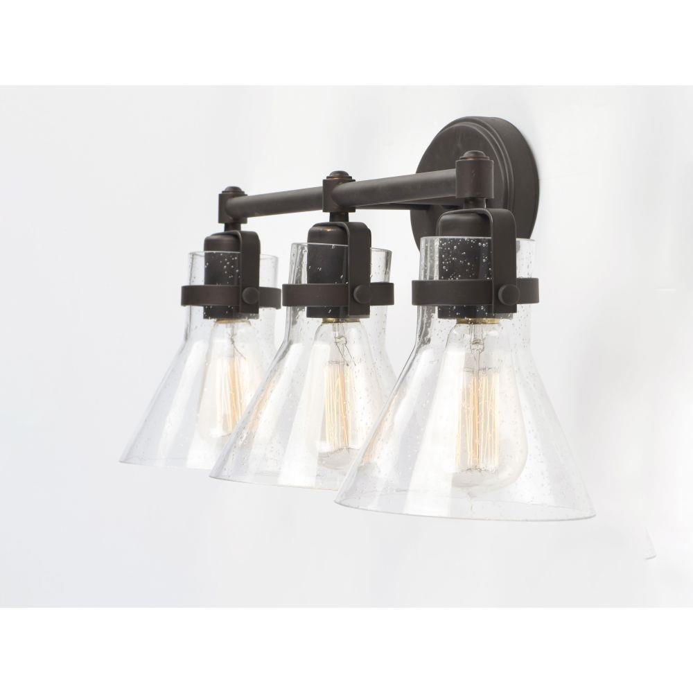 This nautical-inspired collection features Clear Seedy glass cones suspended by a yoke frame. The clear glass offers abundant lighting and compliments the styling of the fixture. Make it a more industrial look by adding filament E26 light bulbs.