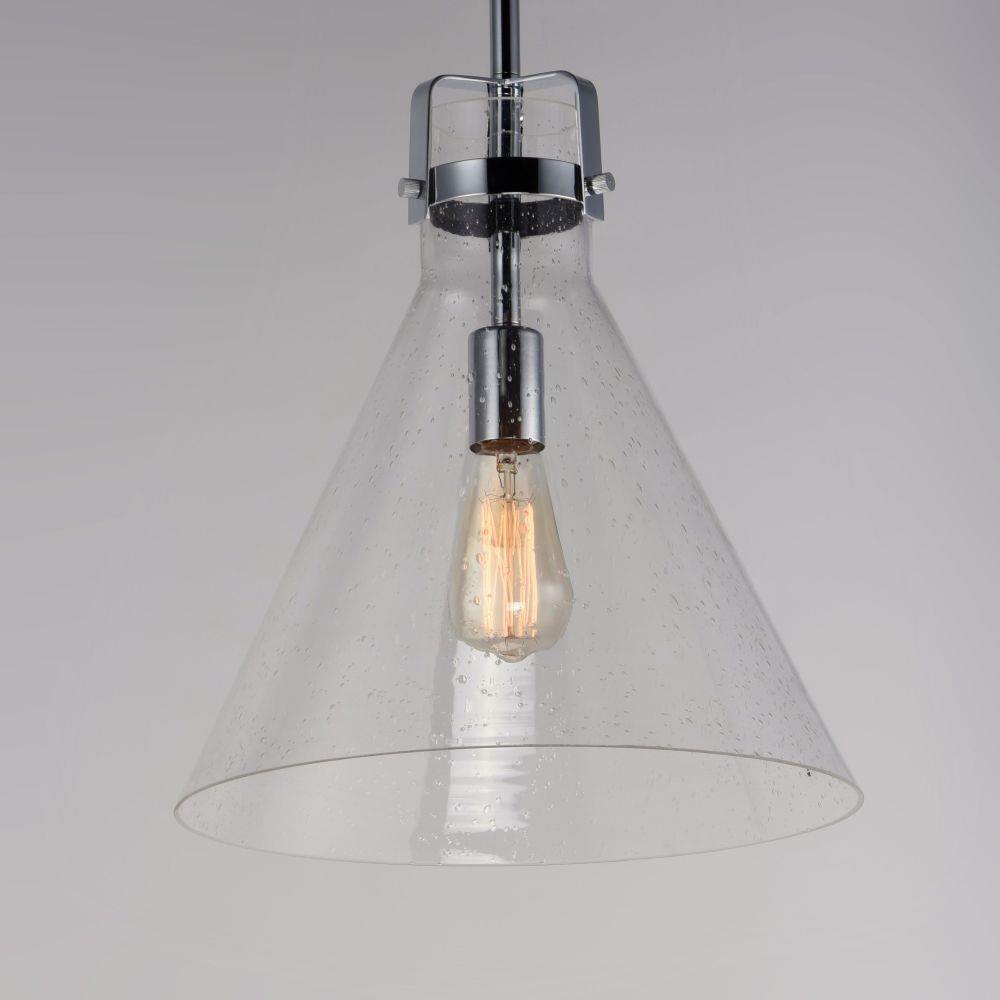 This nautical-inspired collection features Clear Seedy glass cones suspended by a yoke frame. The clear glass offers abundant lighting and compliments the styling of the fixture. Make it a more industrial look by adding filament E26 light bulbs.