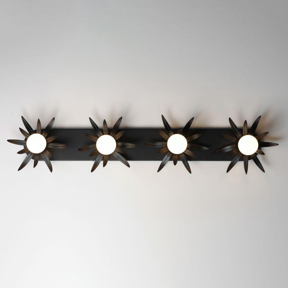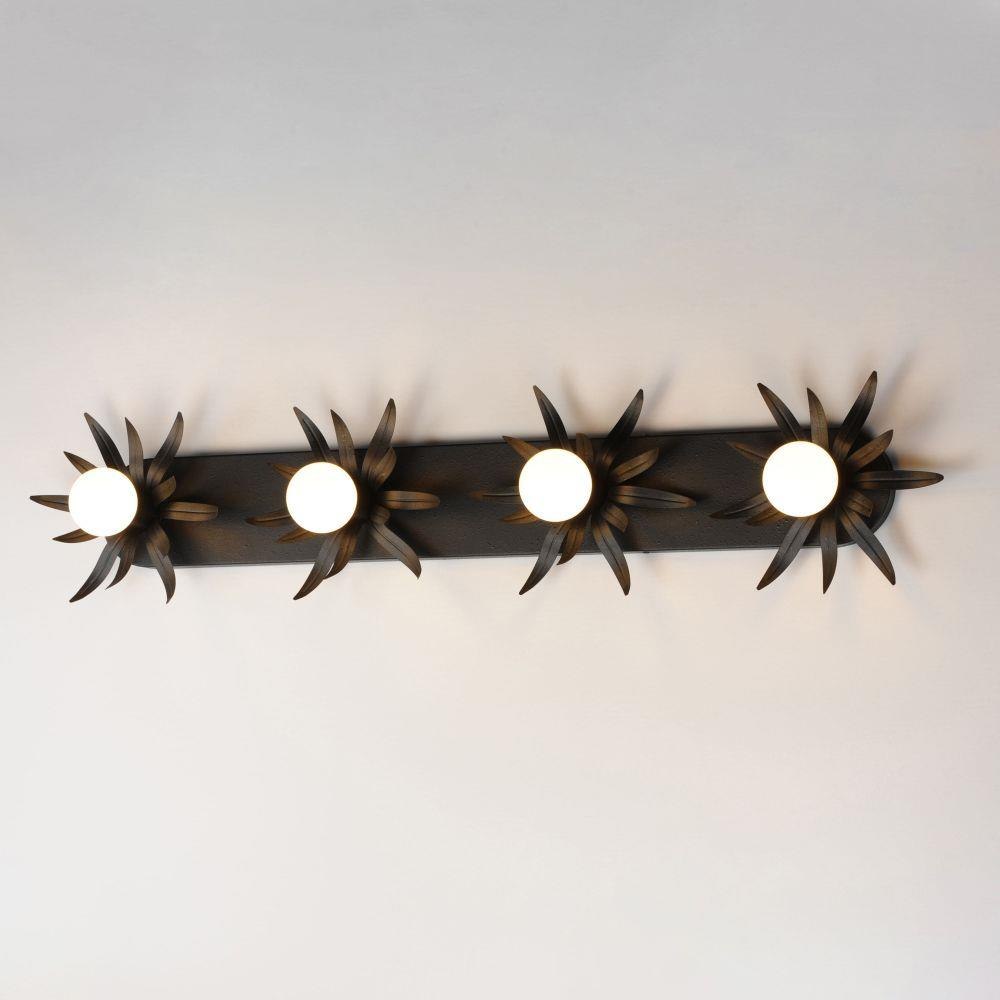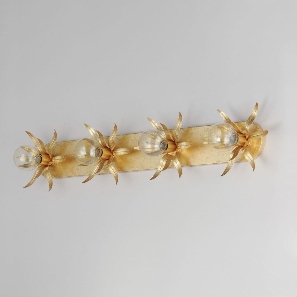 Effortlessly elegant, the biophilic design details that adorn this classic chandelier transport you to an oasis indoors. The design, whether brilliantly gilt in Gold Leaf or hand painted in a textured Anthracite finish, exudes a timeless quality that is sure to please. The graceful form of the chandeliers is constructed of slender metal tubes that sprout from a spherical collector at the center and Off-White metal candle covers. Coordinating Wall Sconces, Pendants and Flush Mount feature matching leaf clusters that allow for coordinating applications throughout the home.