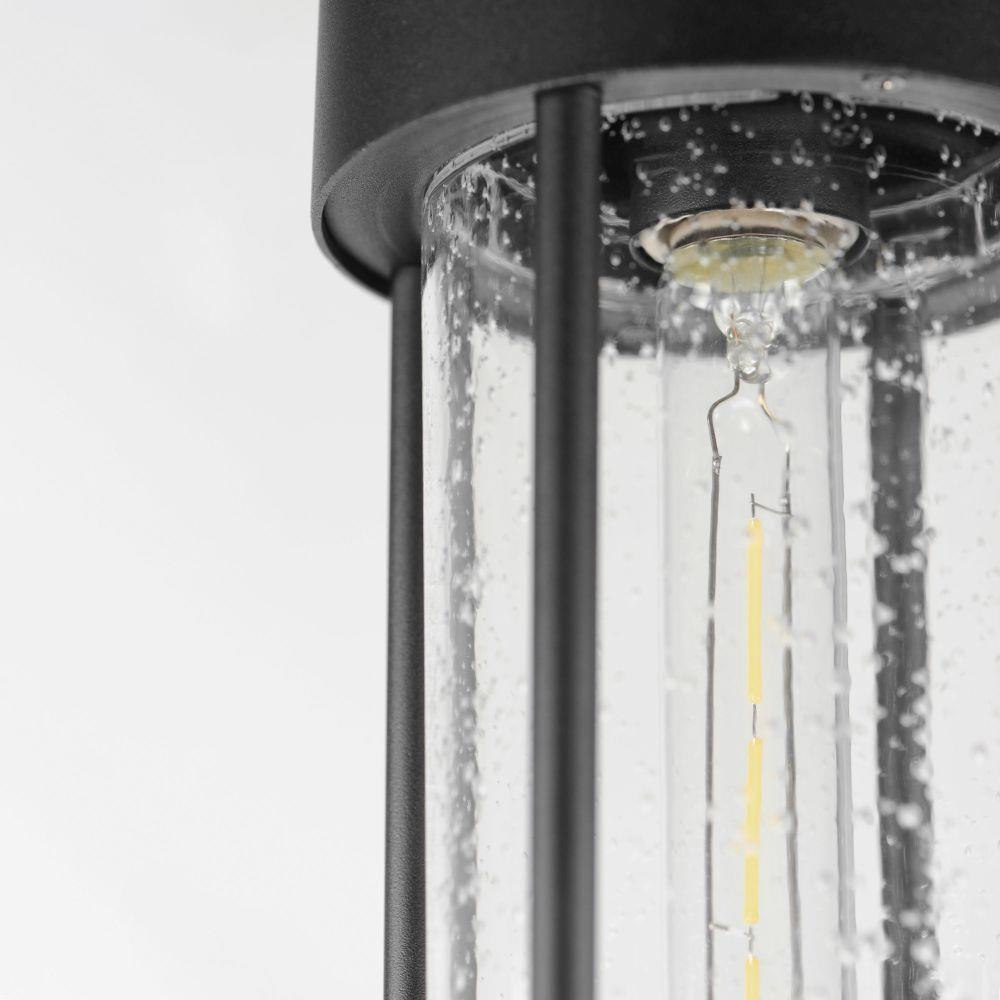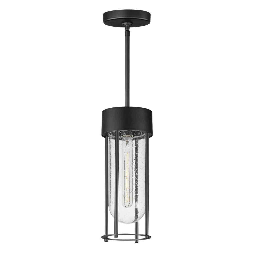 Clean and contemporary, this series of wet location rated outdoor sconces features a capsule of Clear Seeded glass encased within a cage of matte Black outdoor rated powder coat. The transitional appeal of the design pairs well in applications both modern and traditional. Complete the look with a tubular filament lamp.