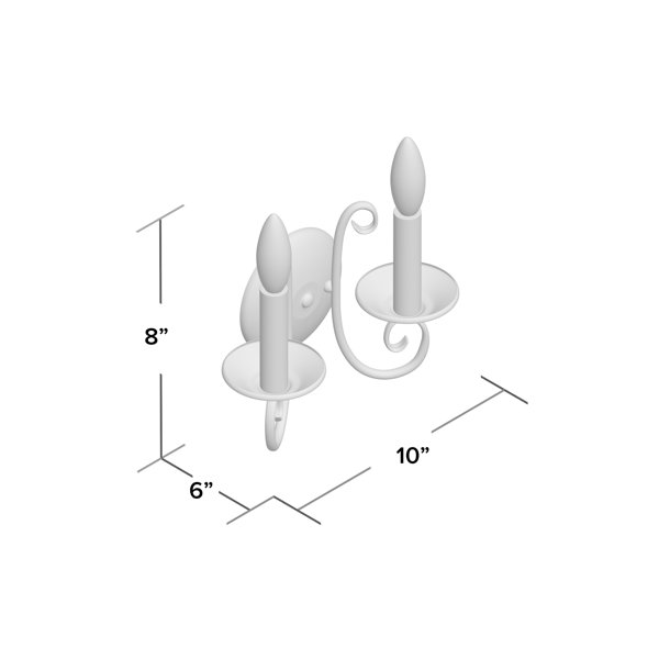 Available in a curated selection of fashionable finishes, this classic two-light candle wall sconce is crafted from iron. A raised round backplate mounts the unit to the wall, while two scrollwork curved arms support candle-style bulb bases on faux drip trays to shine bright light throughout your space. Perfectly placed in the hallway or on each side of a stately mirror for a traditional aesthetic, we think this piece looks just as good installed over your nightstand as a bedside lamp alternative.