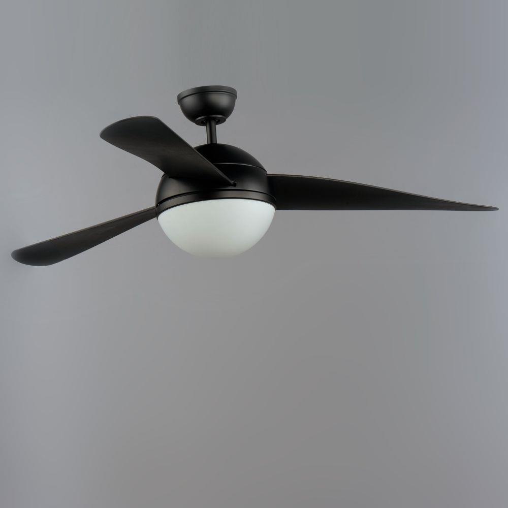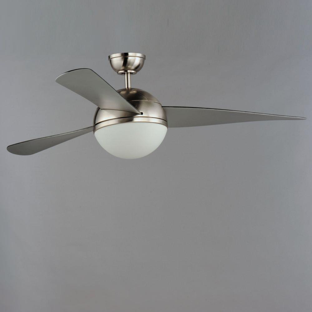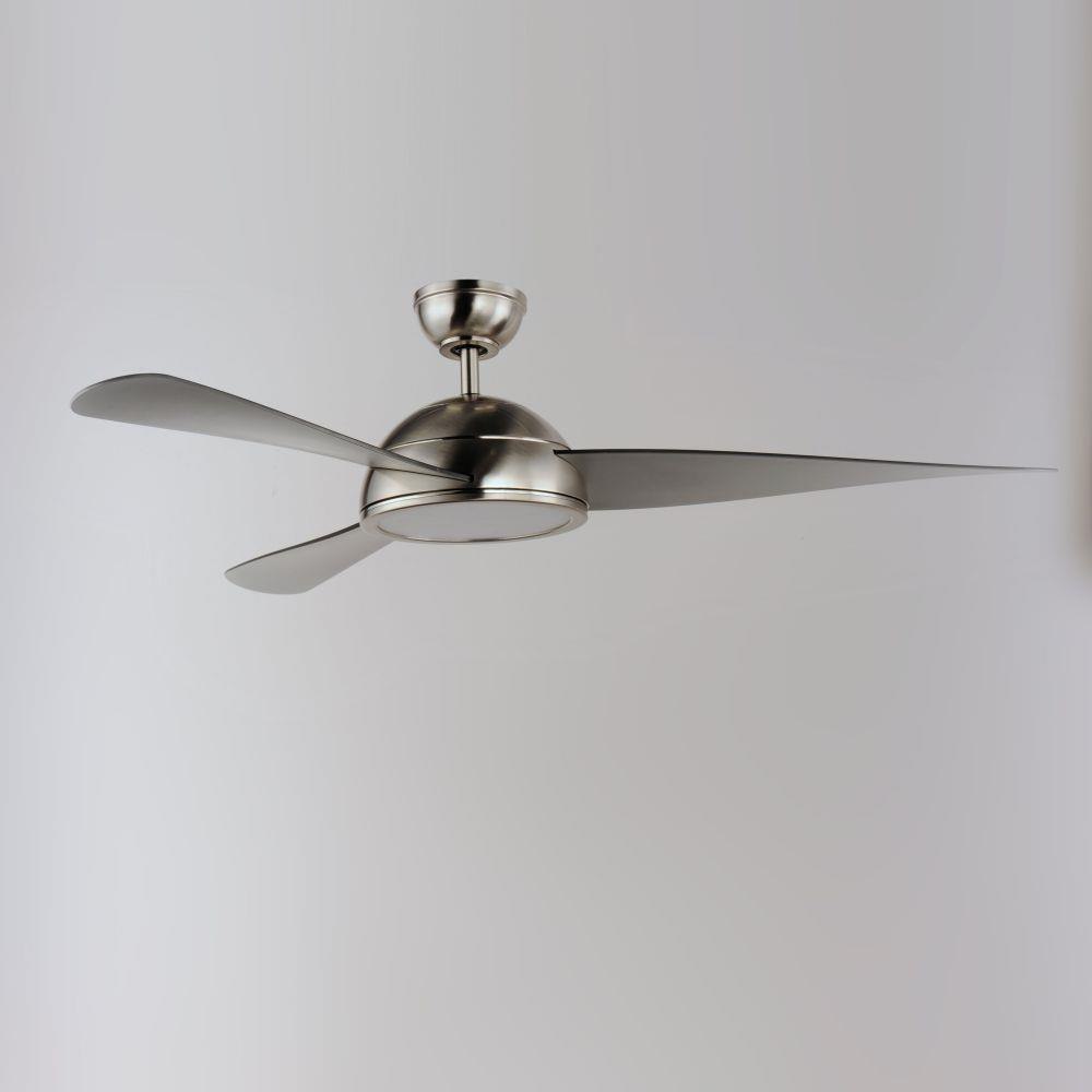 Sweeping arcs define this fan, designed for contemporary and refreshing upgrades. The central housing is domical, from which a trio of uniquely curved fan blades smoothly rotate. Available in Satin Nickel with Silver blades and Black with two-tone Walnut/Black blades, the Cupola also features an LED integrated dome shape or a 2 lamp light kit with a domical glass to create a perfect sphere.