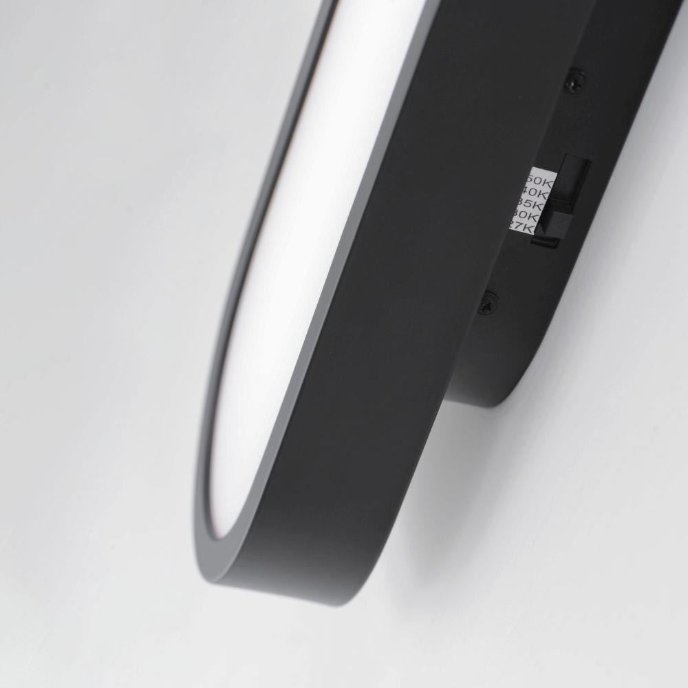 Soft oval forms offer a modern and playful touch to this LED wall mounted sconce. The face of the fixture is a light guided White acrylic diffuser that even illuminates the edge-lit LED light source. The sleek shape is made even more attractive by the bright illumination provided by the fixture itself. Great for use in bathrooms or corridors, the fixture is ADA compliant and available in 4 lengths. A recessed housing behind the fixture not only mounts the fixture with an attractive extension that makes it appear to be floating off the wall, but it also features a 5-step color temperature select switch allowing you to discreetly adjust the LED lighting to 5 settings ranging from a warmer 2700K to 3000-3500-4000 and daylight white 5000K. These additional product features thereby give more latitude to the design applications without special requests.