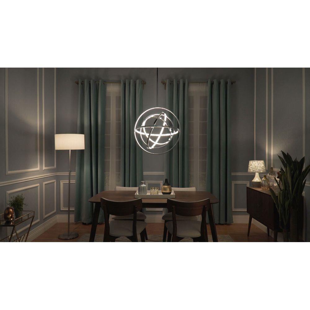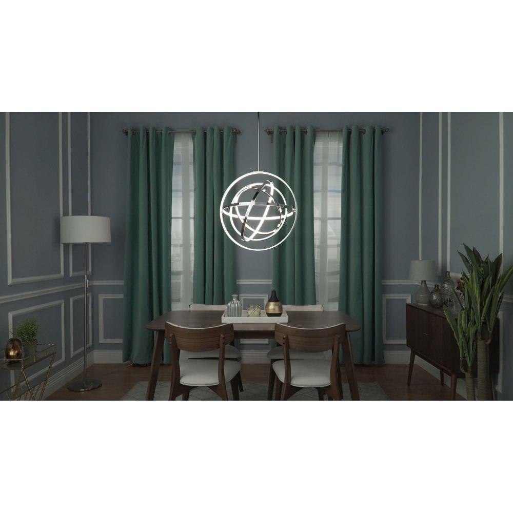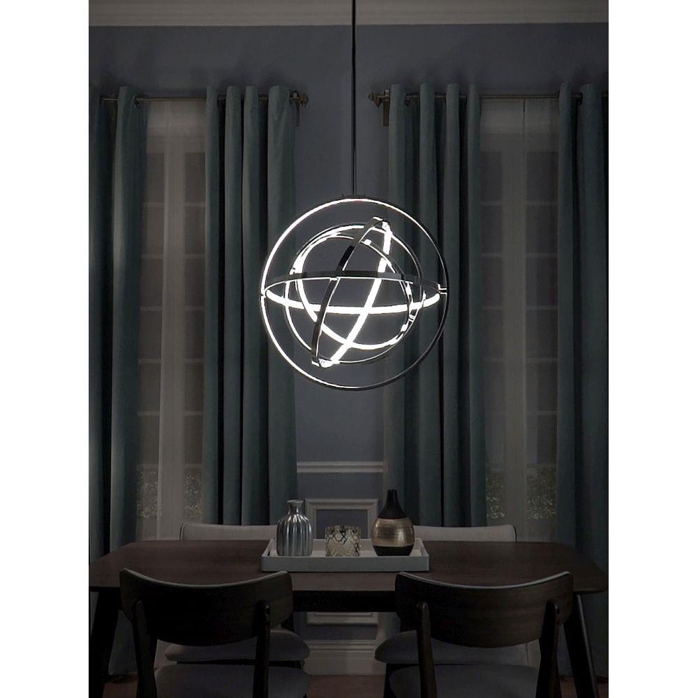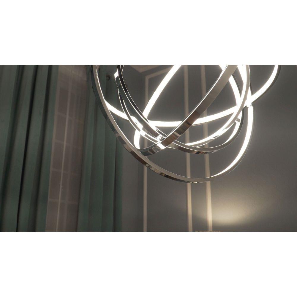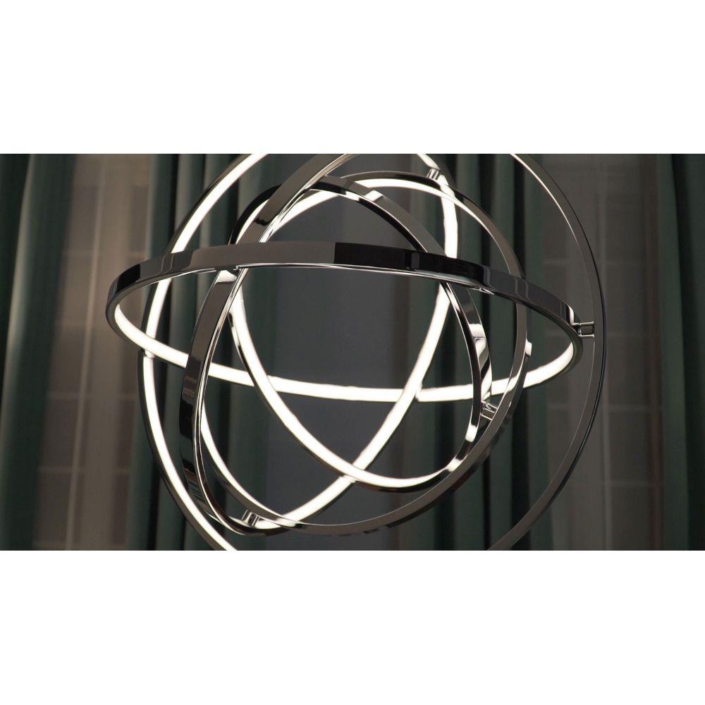 A very unique and interesting design that features concentric bands of Polished Chrome or Black that rotate on 3 axis points and adjusts in multiple directions similar to a gyro. The edge of each slender band encases a small LED strip covered by a frosted lens. This work of art is so much more than just a lighting fixture.