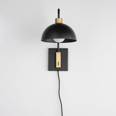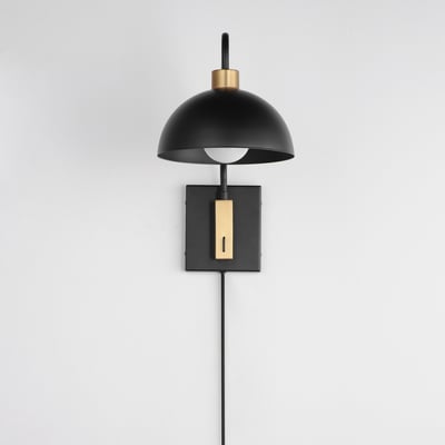 The Thelonious Wall Sconce enhances modern spaces with its dome-shaped shades in Matte Black, elegantly contrasted by Natural Aged Brass accents. This versatile collection offers multiple configurations, making it an ideal choice for various settings.