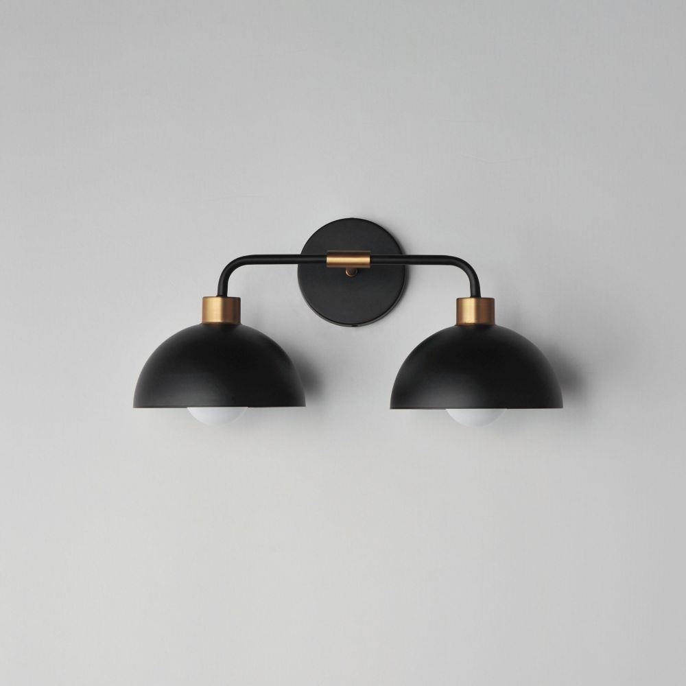 Dome shaped shades in Matte Black contrast Natural Aged Brass accents. Available in flush mount, bath vanity, and swing arm wall sconce configurations. This collection delivers an approachable, modern design that pairs well with transitional design aesthetics.