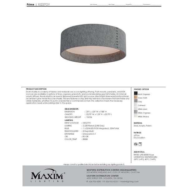 Prime Acoustic 25 in. LED Light Bulb Included Flush Mount 120-Volt to 277-Volt