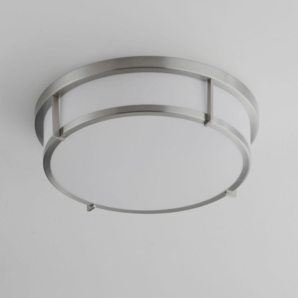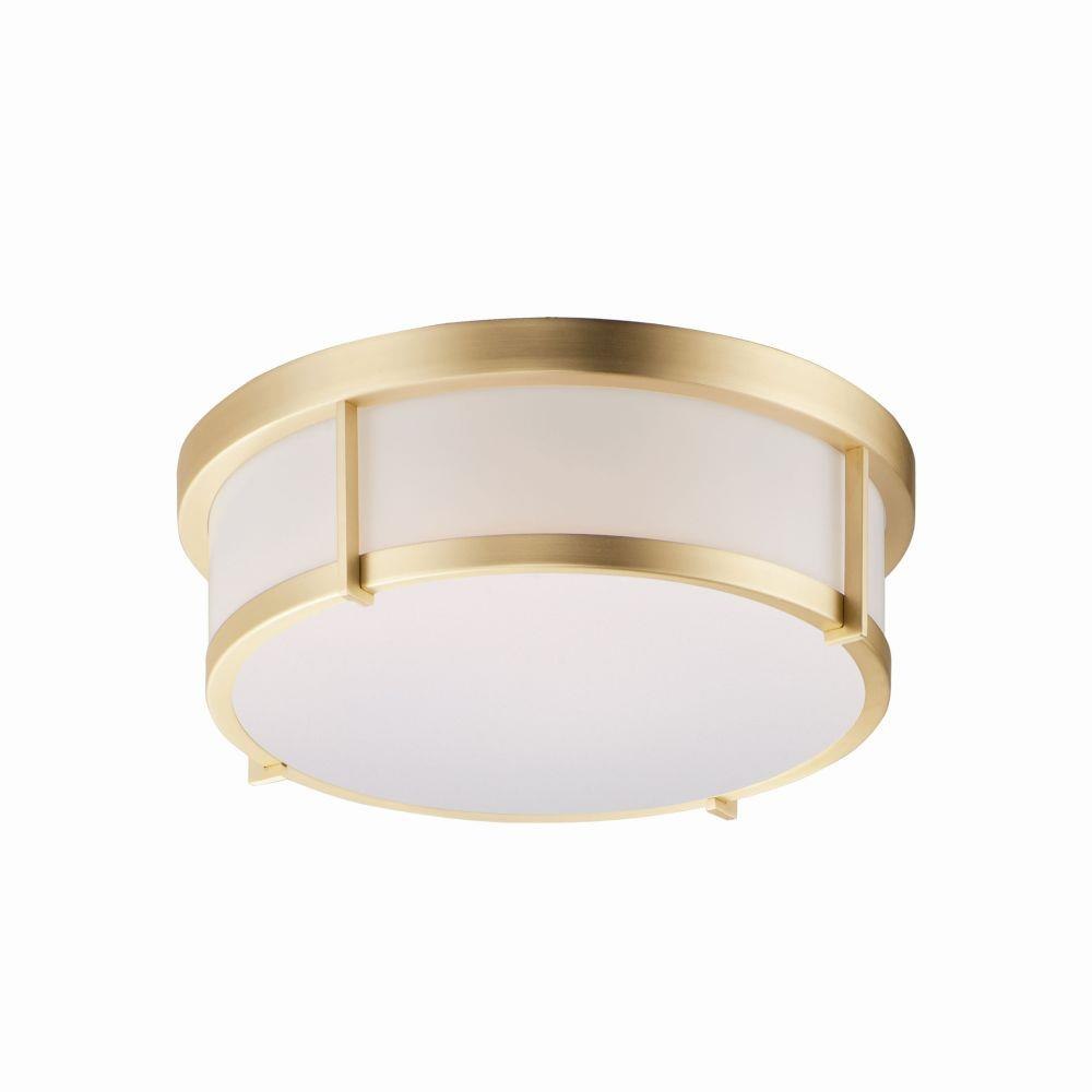 A steel framed acrylic shade transitional flush mount available in a variety of finishes and sizes. Featuring easy accessibility to the shade after installation, the locking mechanism that shade's frame rests on top of making removal quick for keeping clean and replacing lamps over its lifetime. For those who prefer not to re-lamp, an LED option enhances the fixture by evenly dispersing the light across the shade, and it includes additional options made for light commercial applications. This includes an emergency backup battery and range voltage inputs. Available in your choice of Satin Nickel, Satin Brass, and Black and two shade sizes.
