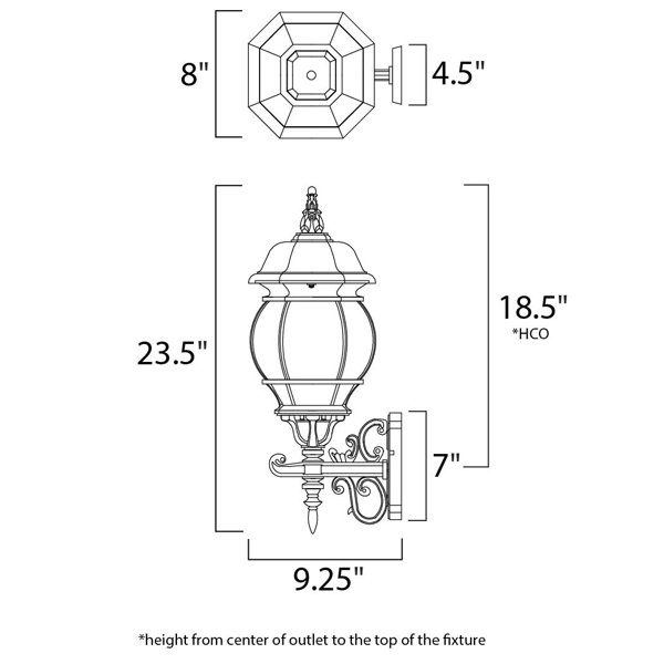 This wall lantern helps illuminate outdoor paths or any entrance into your home. It features a sleek barrel silhouette with traditional accents that include an eye-catching finial-inspired top and scrollwork attached to the horizontal arm. It's made from die-cast aluminum with a rust- and UV-resistant finish that complements a variety of styles. Plus, its architectural silhouette includes a beveled glass shade that lets the light through from three bulbs (sold separately). It's also compatible with dimmer switches, effortlessly taking you from day to night. Rated for wet locations, it stands up to the elements even in exposed, uncovered areas.