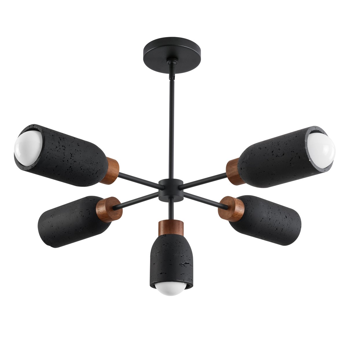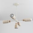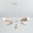 The Pompeii Chandelier celebrates the beauty of natural materials, featuring carved stone shades crafted from either Travertine or volcanic Lava Rock. This modern lighting fixture blends organic elegance with functional design, making it an exquisite addition to any space.