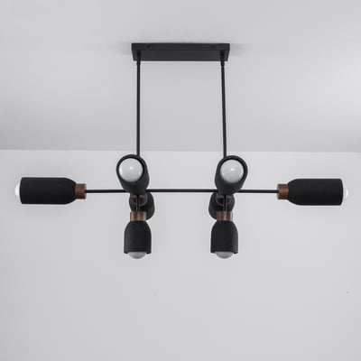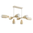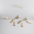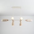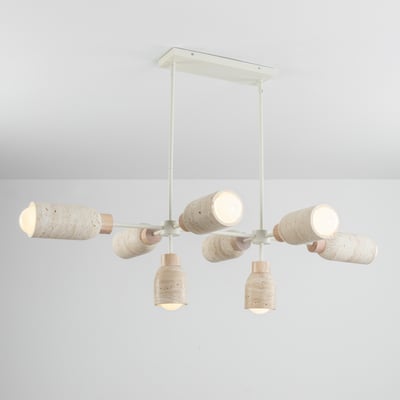 The Pompeii Linear Pendant showcases the beauty of natural materials, featuring carved stone shades and lathed wood bases. This modern lighting solution enhances any space with its organic elegance and sophisticated design.