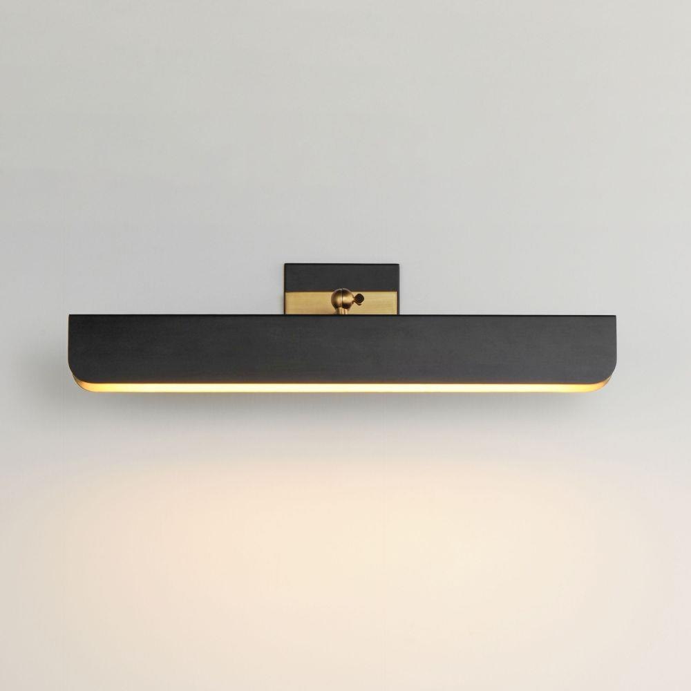 Tapered metal shades are finished in contrasting two-tones of Matte Black and Natural Aged Brass. Dedicated LED light sources cast even lighting across white polycarbonate diffusers. Available in two sizes of flush mount and a dual-plate picture light configuration, these collections provide ample lighting and energy efficient light sources.